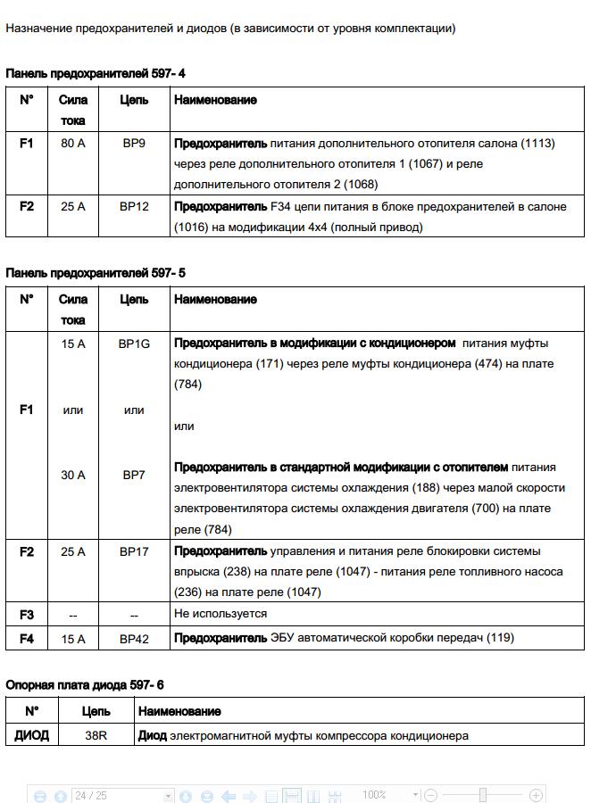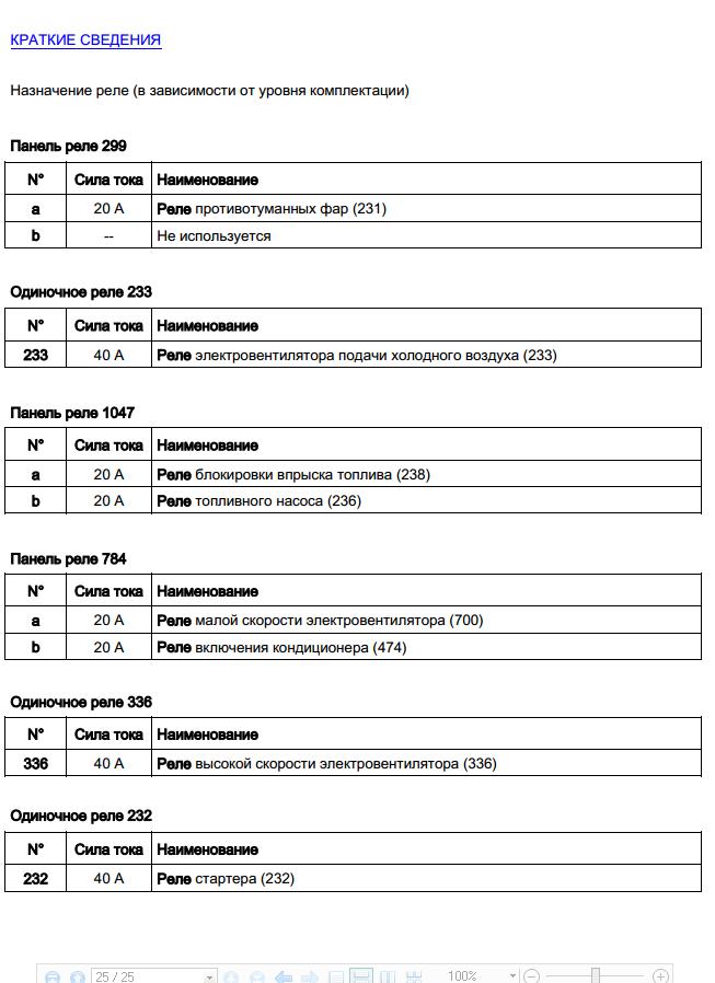 F1 60А - Предохранитель замка зажигания (104) - переключателя наружного освещения (209) F2 - 15А - Предохранитель в модификации с кондиционером, питания муфты кондиционера (171) через реле муфты кондиционера (474) на плате (784) или 30А - Предохранитель в стандартной модификации с отопителем питания электровентилятора системы охлаждения (188) через малой скорости электровентилятора системы охлаждения двигателя (700) на плате реле (784) F3 25А - Предохранитель управления и питания реле блокировки системы впрыска (238) на плате реле (1047) - питания реле топливного насоса (236) на плате реле (1047) F4 - Не используется ![]() F5 15А - Предохранитель ЭБУ автоматической коробки передач (119) F6 60А - Предохранитель цепи питания переключателя наружного освещения (209) - блока предохранителей в салоне (1016) F7 40А - Предохранитель в модификации с кондиционером питания электровентилятора системы охлаждения (262) через реле высокой скорости электровентилятора системы охлаждения (336) или через реле малой скорости электровентилятора системы охлаждения (700) на плате реле (784) и резистора электровентилятора кондиционера (321) F8 25А - Предохранитель ЭБУ АБС (118) на модификации без ESP - ЭБУ АБС и ESP (1094) на модификации с ESP F9 50А - Предохранитель ЭБУ АБС (118) на модификации без ESP - ЭБУ АБС и ESP (1094) на модификации с ESP K1 40A - Реле электровентилятора подачи холодного воздуха (233) K2 40A - Реле высокой скорости электровентилятора (336) K3 20A - Реле малой скорости электровентилятора (700) K4 20A - Реле включения кондиционера (474) K5 20A - Реле топливного насоса (236) K6 20A - Реле блокировки впрыска топлива (238) K7 - НЕ используется. ps Есть нестыковочка у Дачии и Рено по подкапотному ком. блоку...