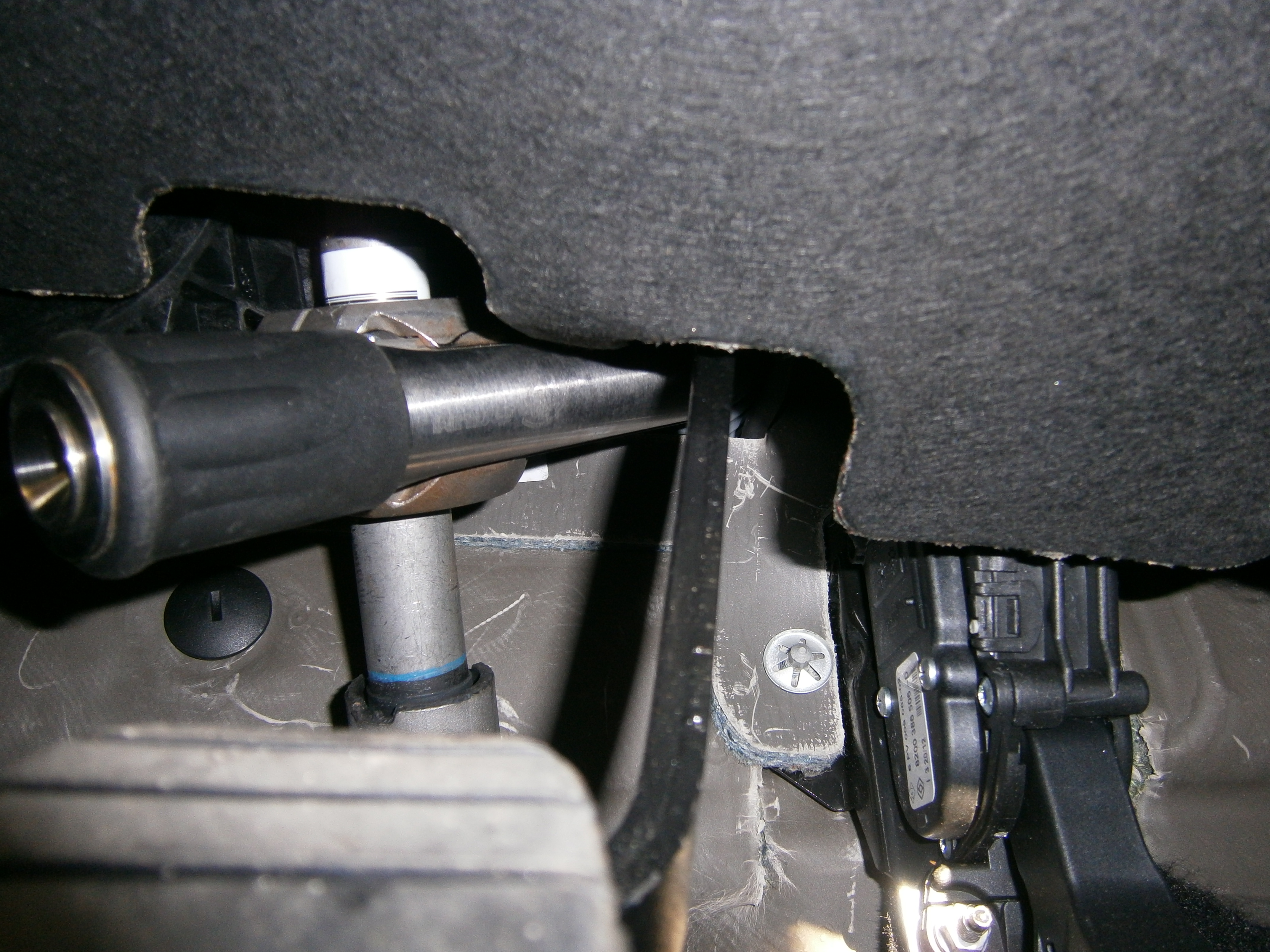 Поворачиваем колёса до упора вправо, Затем возвращаем руль назад, чтоб его спицы приняли горизонтальное положение, Вынимаем ключ и стопорим руль. Вот в этом положении вставляем штырь под углом слева направо. Теперь угонщику надо повернуть руль строго влево - но штырь упирается в моторное отделение и крепление педали тормоза. Последний раз редактировалось Василич; 01.06.2015 в 22:32. |