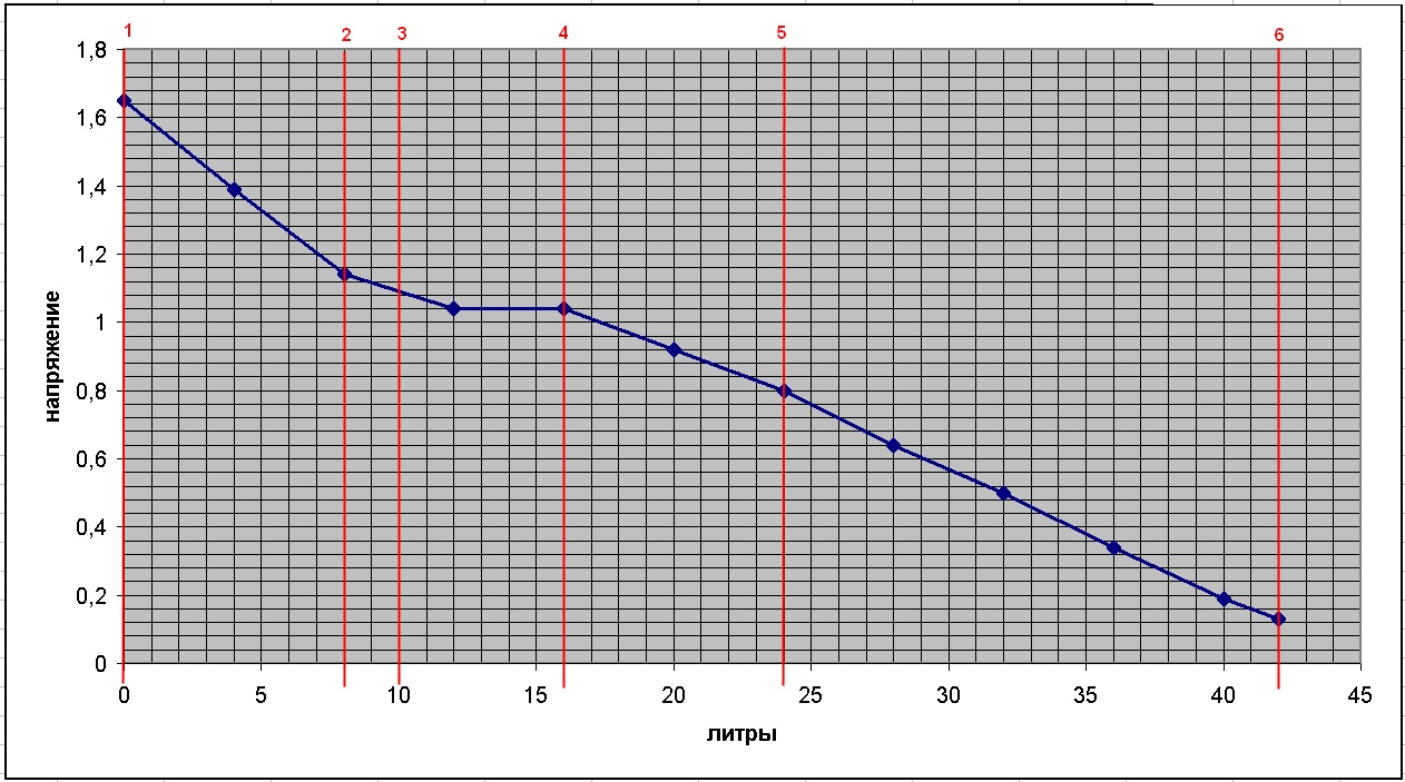 За нулевую точку взял момент перехода на резерв. Еще раз подтвердилось, что под самое горло от точки резерва влезает 57 литров Т.о. можно видеть, что калибровка по 2-м точкам - это полный бред А по 6 точкам вполне реально сделать калибровку!!! |