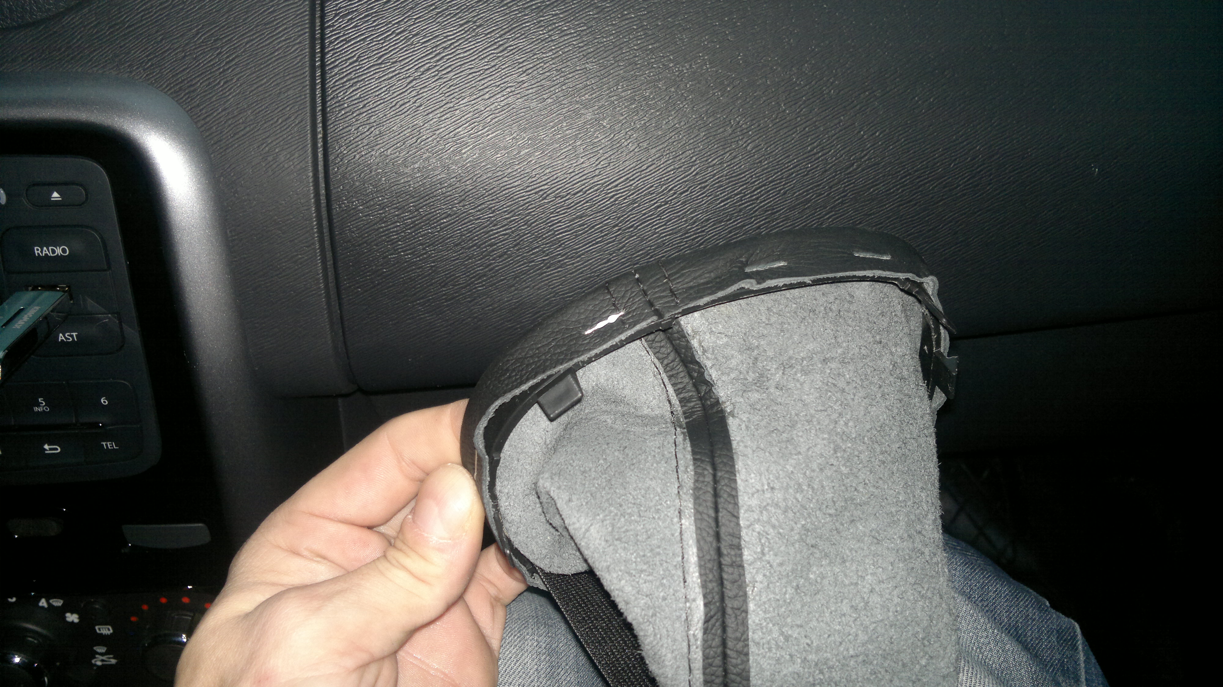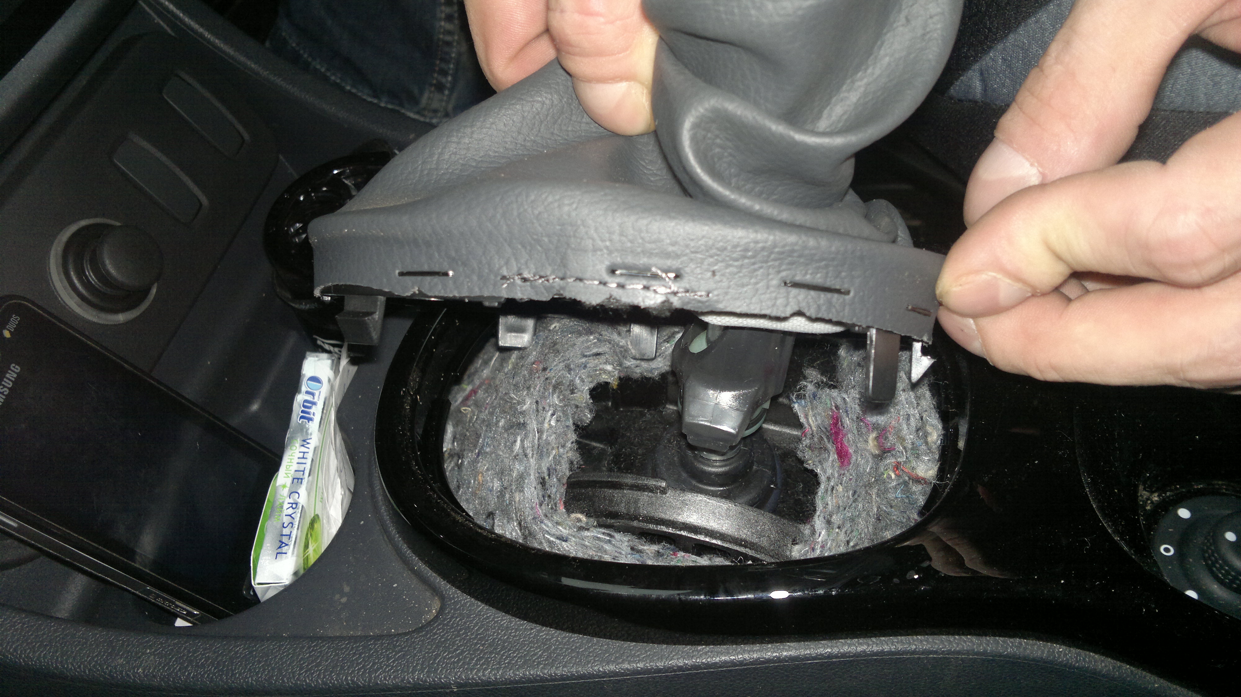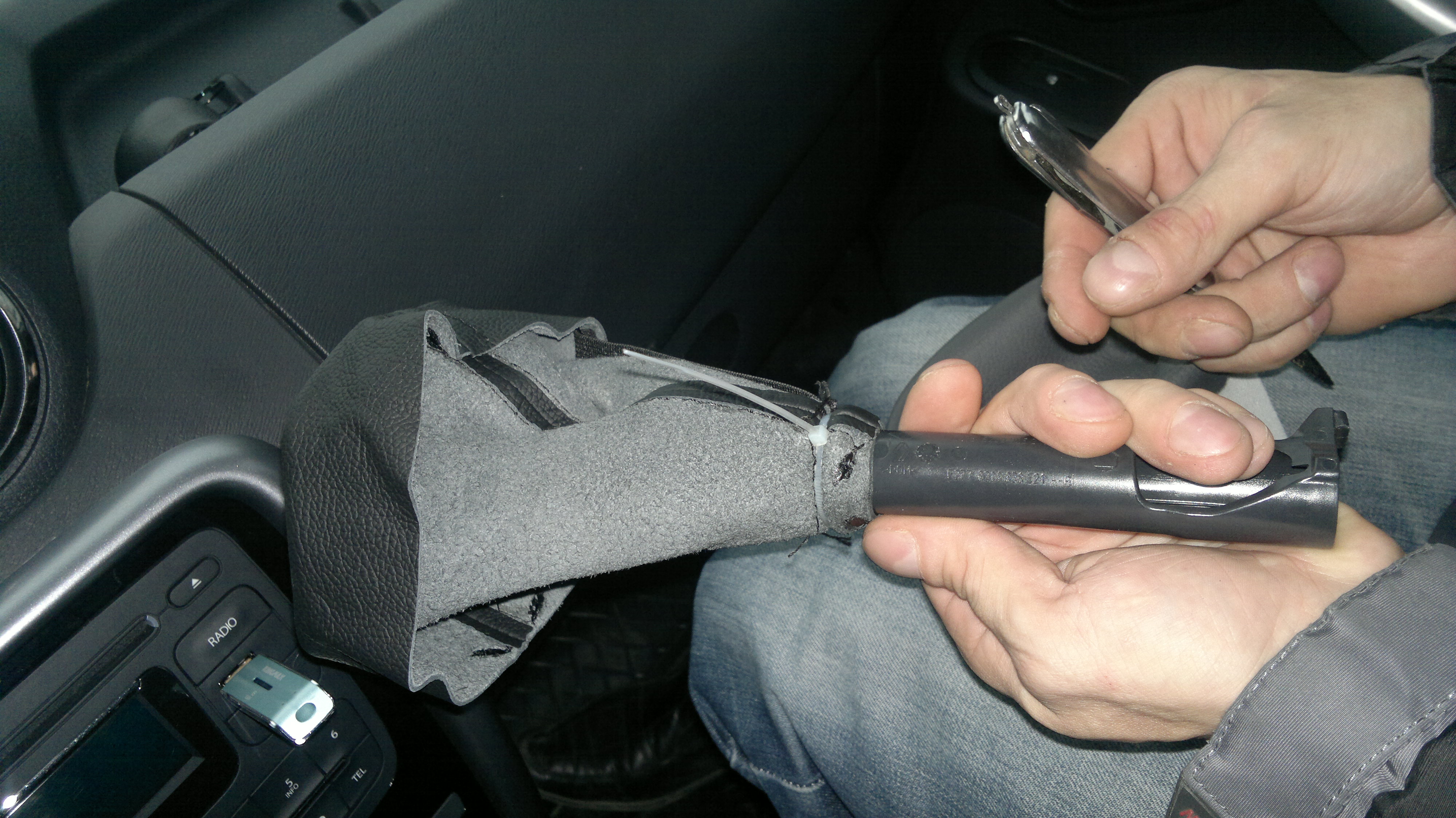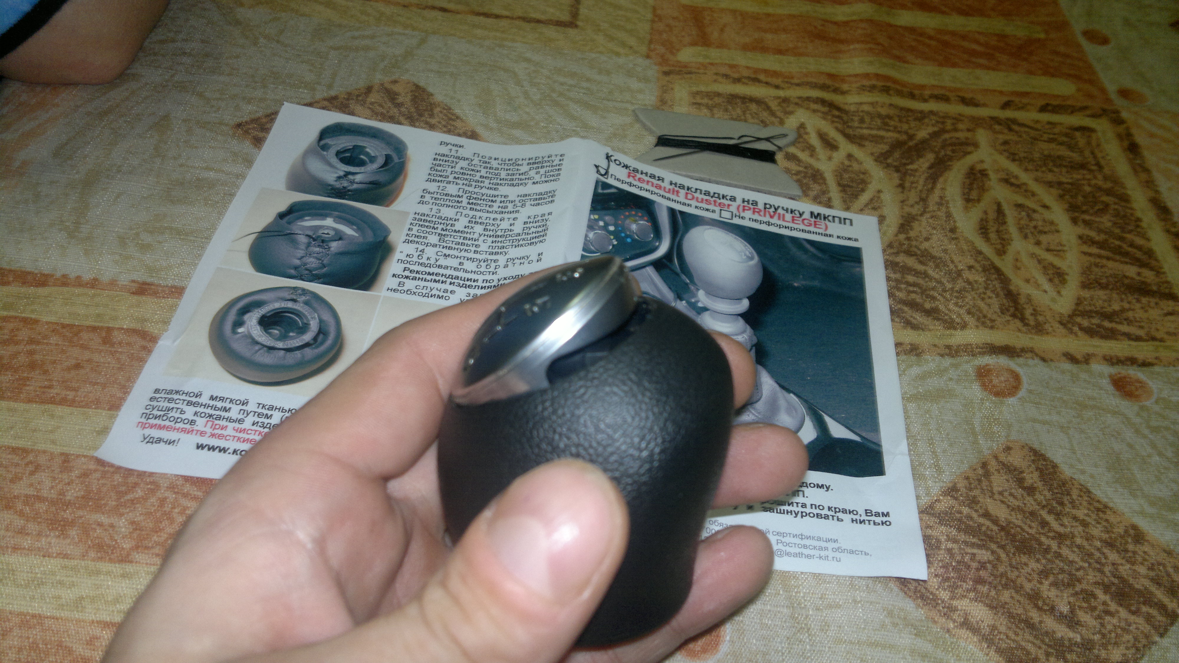 Подытоживаю работы по кожаным аксессуарам установкой накладки на ручку КПП и манжету...