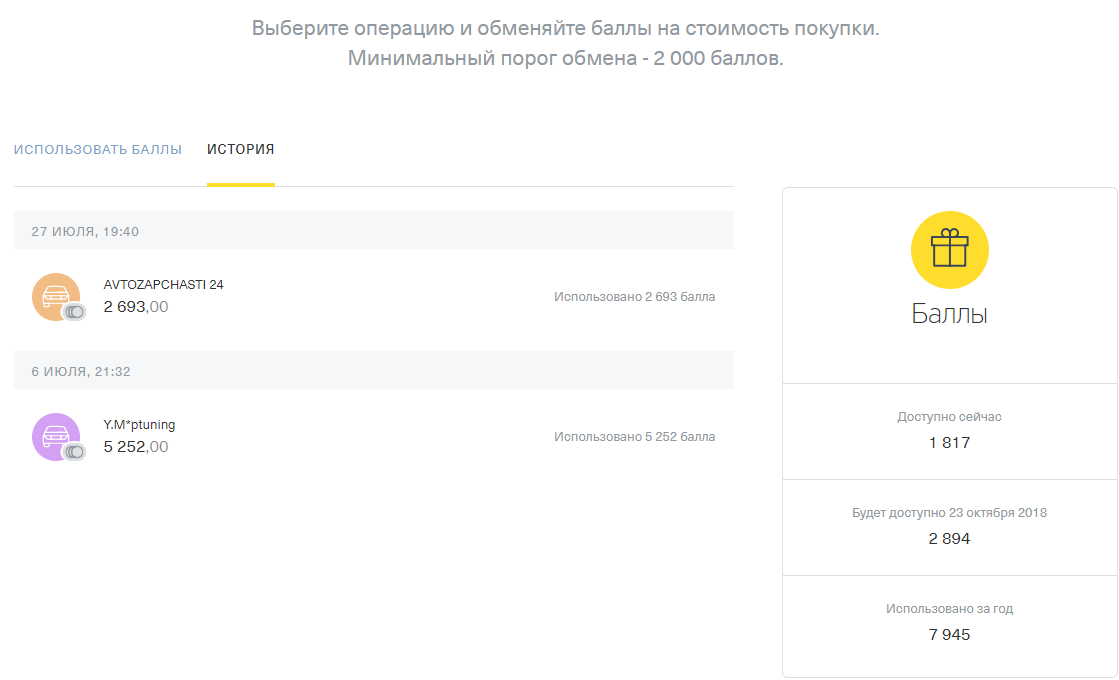 Обмен 4 000 рублей за 4 000 баллов доступен за траты 200 тысяч. Это соответствует 2% «каши».
