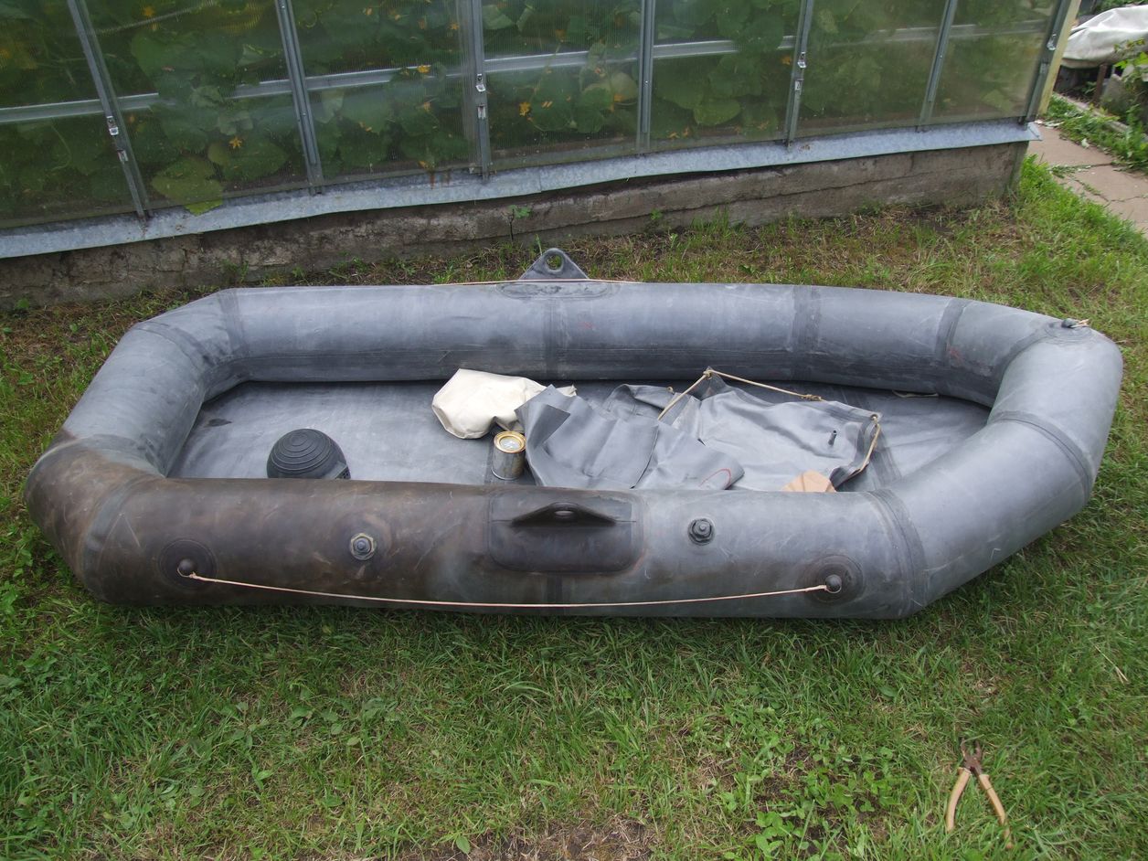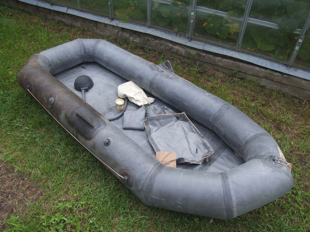 .В том числе и мешок, из которого извлёк вот эту лодку: Лодка практически новая, как тот парашют, не открывался ни разу, использовался только один раз ![]() Изготовлена в ноябре 1976 г!, но ещё в тальке. Теперь о неприятном, накачал 2 отсека, носовой не спускает, а вот кормовой (который более тёмный на фото) лежал на сгнившем полу, видать и влага попадала, соответственно есть несколько протёртостей, через которые воздух уходит. Сама лодка из прорезиненой ткани, в комплекте пара больших кусков такой же ткани для ремонта. Есть даже баночка клея, но судя по этикетке ему давно пришёл кирдык В общем бросил в багажник, если кому-то нужна - пишите, милости просим. Ну или в очередной раз схожу помойку покормлю.