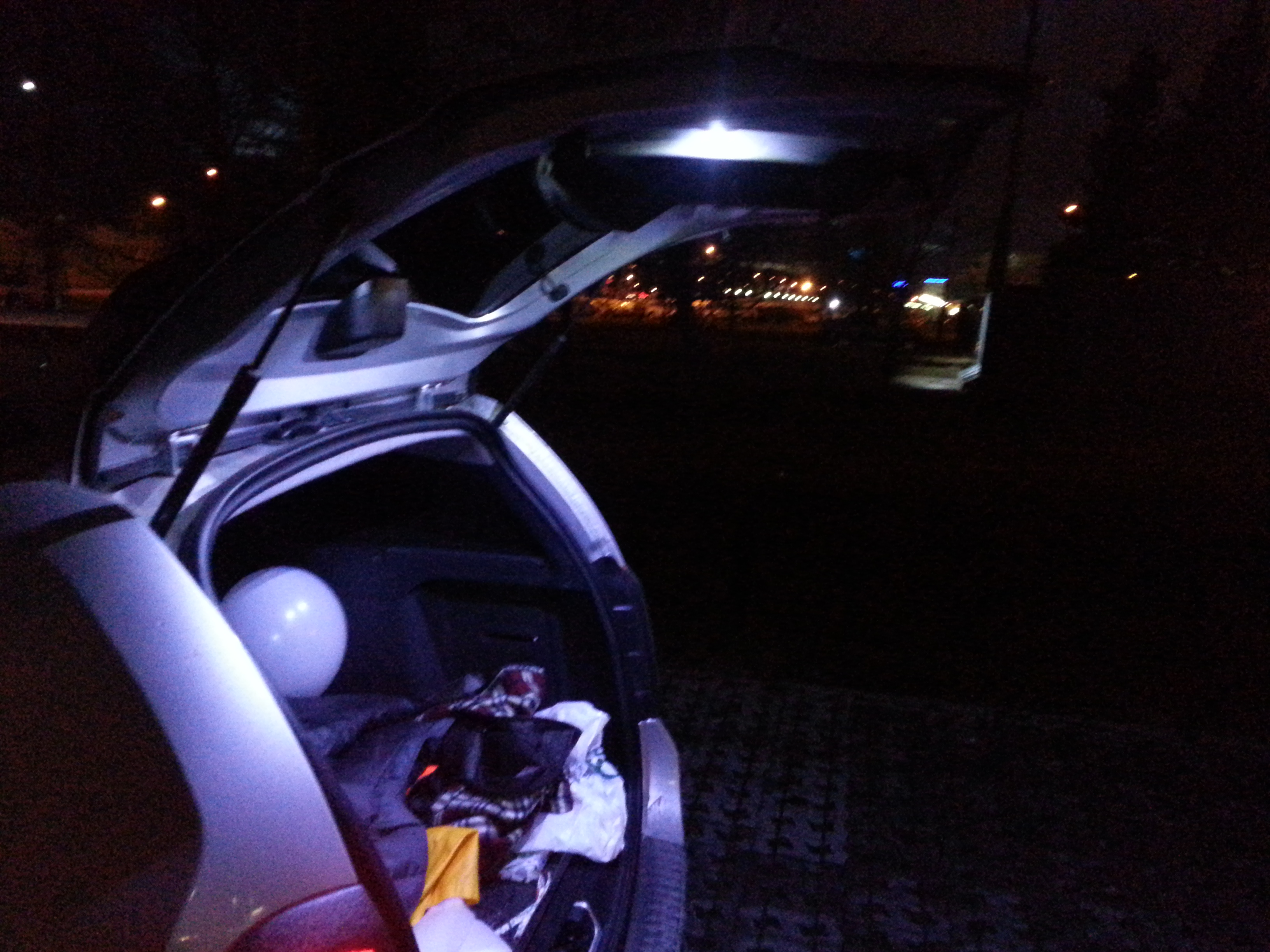 Поставил линзованные лампочки в заднюю дверь. Очень доволен. До этого стояли диодные ленты по краям, светили так се. А эти 2 малютки светят как прожекторы. Фото ниже. Снимал без вспышки