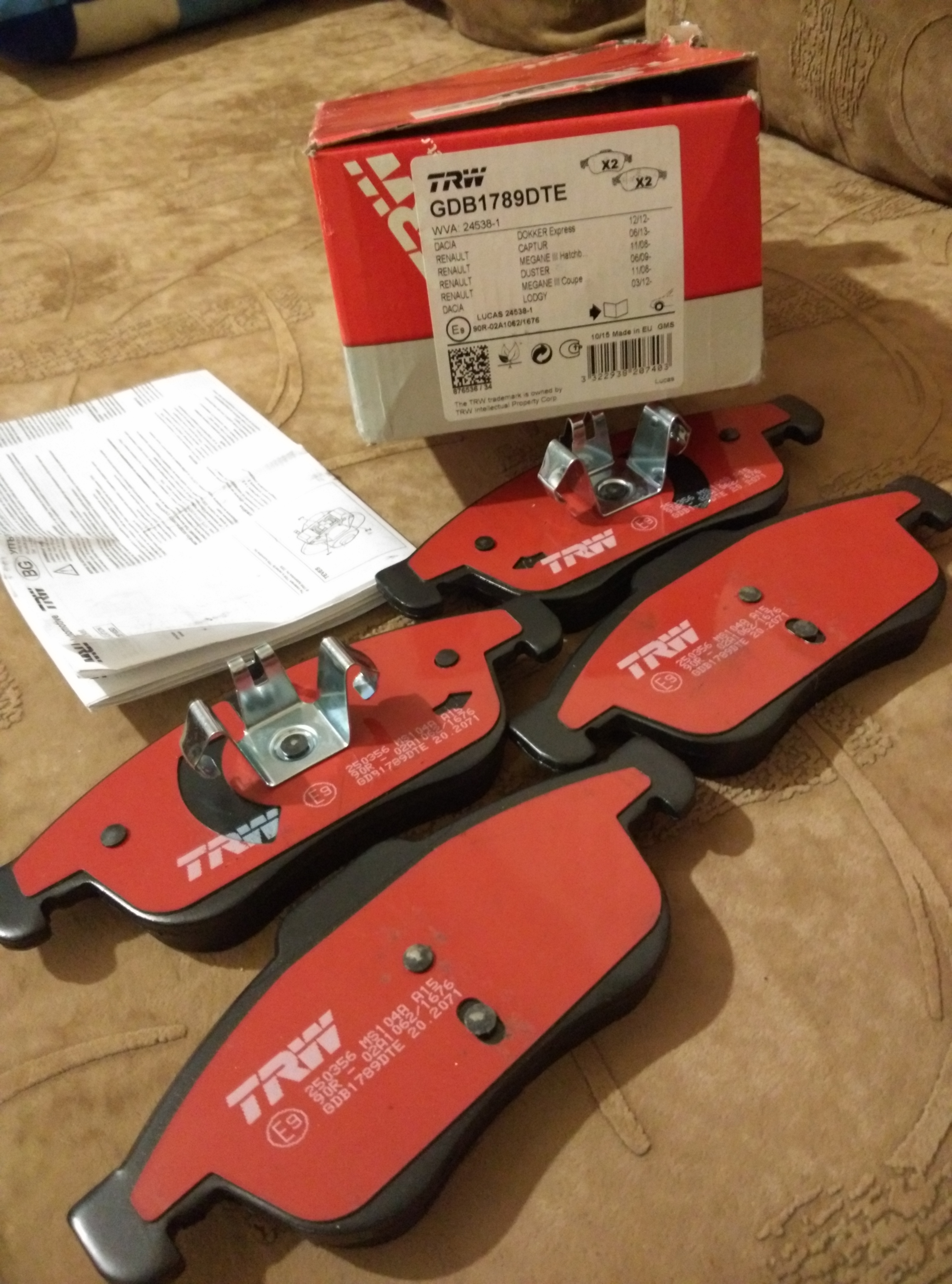 Купил на AUTODOC колодки TRW GDB1789DTE с керамикой. При переобувке буду менять, впечатление отпишу позже.