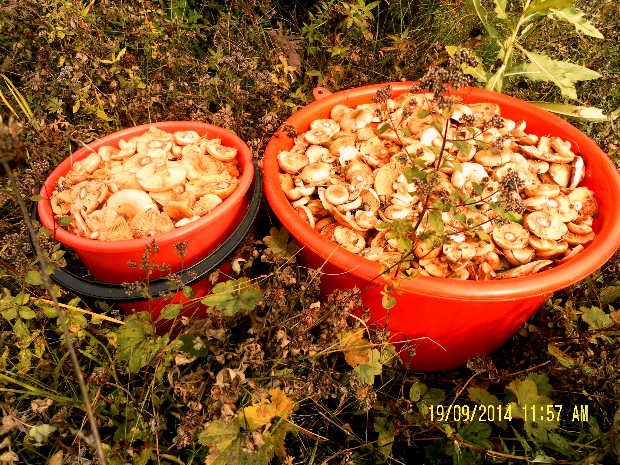 Сегодня с утра и до обеда поохотился в Ясашной Ташле. Набрал два ведра белянок, попалось штук пять груздей и около десятка боровичков, пару ведер опят и полтора ведра рыжиков...