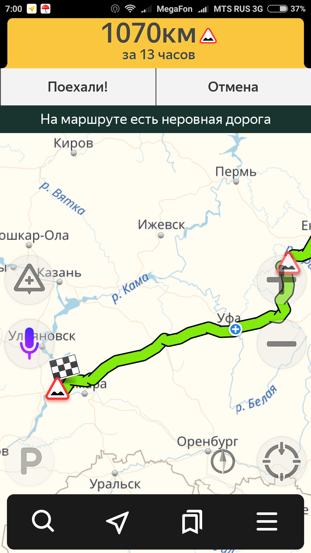 У нас в области, по дороге на Сызрань, в трёх местах ремонт дороги. Реверсивное движение. Но это было три недели назад. Как сегодня не знаю. Так что можем потратить лишних минут 15-20.