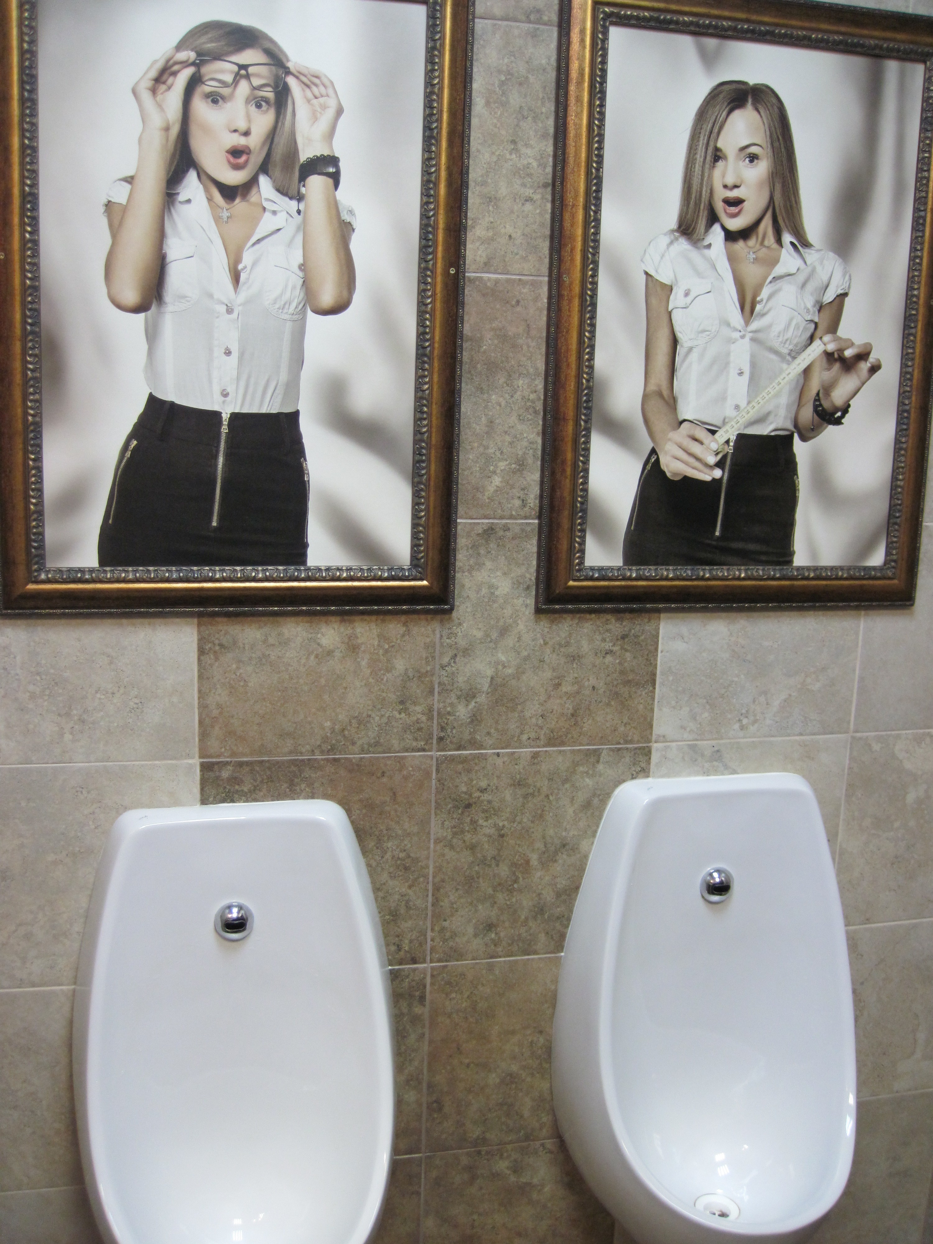 Заходишь, вот так, по малой нужде, а тут на тебя одна пялится, а другая сантиметр приготовилась прикладывать.... И забыл зачем пришел! |