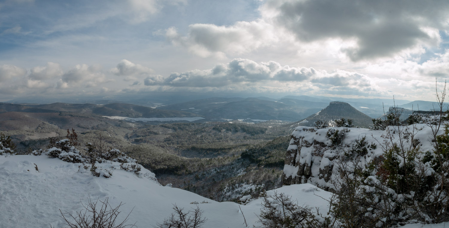 Успенский монастырь разросся. Чуфут-Кале. Из-за гололеда закрыт, но нам сегодня пещерный город не интересен. Караимское кладбище. На информационном листе написано что оно имеет 7000 захоронений. Очень много памятных табличек, в каком-то хаусе, я всё думал как сюда их принесли и как сделали, камень хрупкий, а все надписи и орнаменты каким-то образом выдалбливали. Встретил и современные захоронения. Снега на средней гряде гор достаточное количество. А вот за этим мы шли. Теперь можно сесть на лавочку, здесь туристическая точка и сюда возят на УАЗиках туристов. Мы же пришли пешком Бачхисарая. Просматривается и Тепе-Кермен, и Научное, и Сель-Бухра. А как-то летом там внизу лежал мой внедорожный путь на дастере между перечисленными объектами. Главная гряда цепляет облака и к сожалению Бабуган не просматривается. Последний раз редактировалось Подводник; 23.01.2022 в 18:38. |