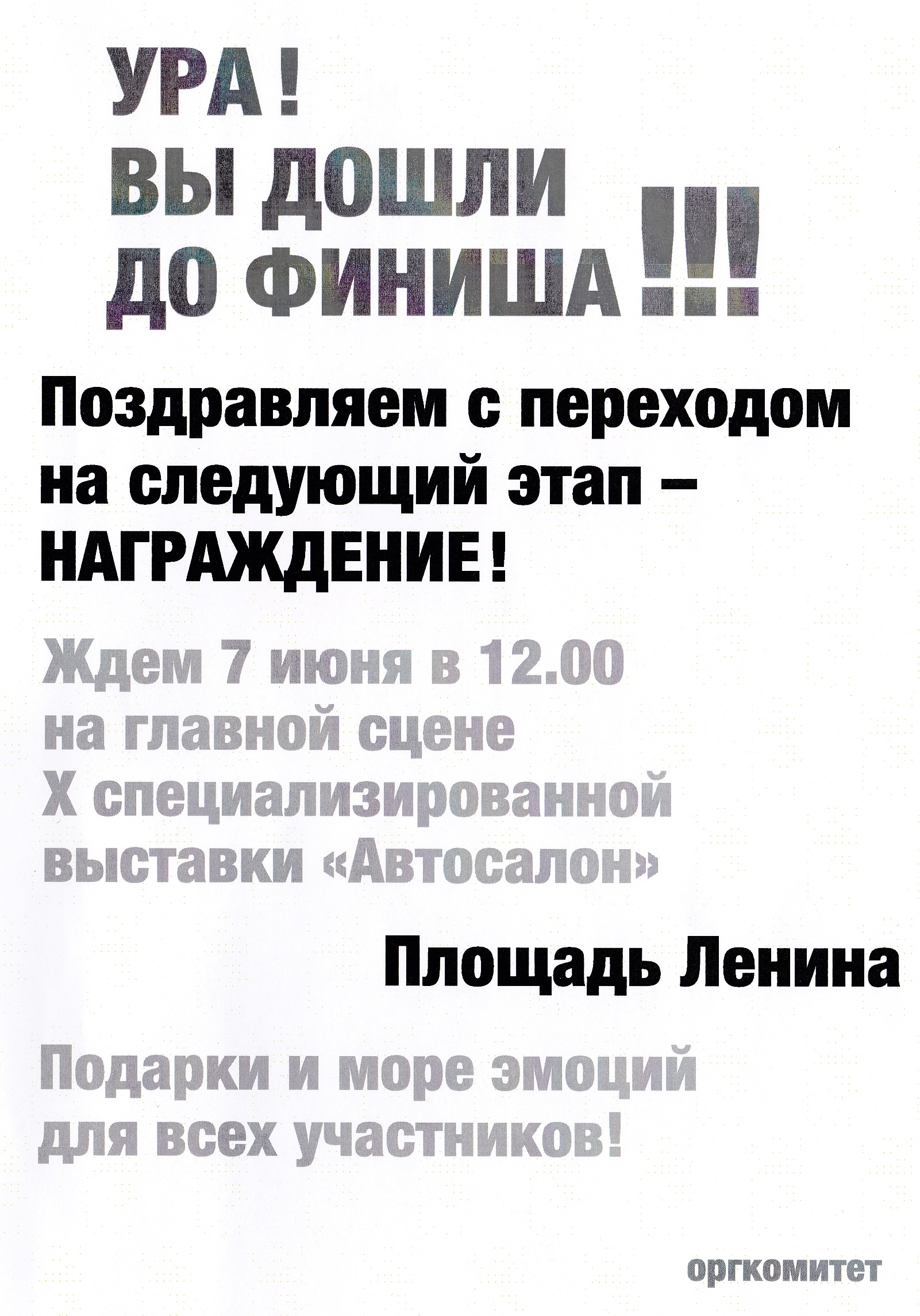 Объявление победителей и награждение состоялось 7 июня на площади... Нажмите здесь, чтобы увидеть весь текст