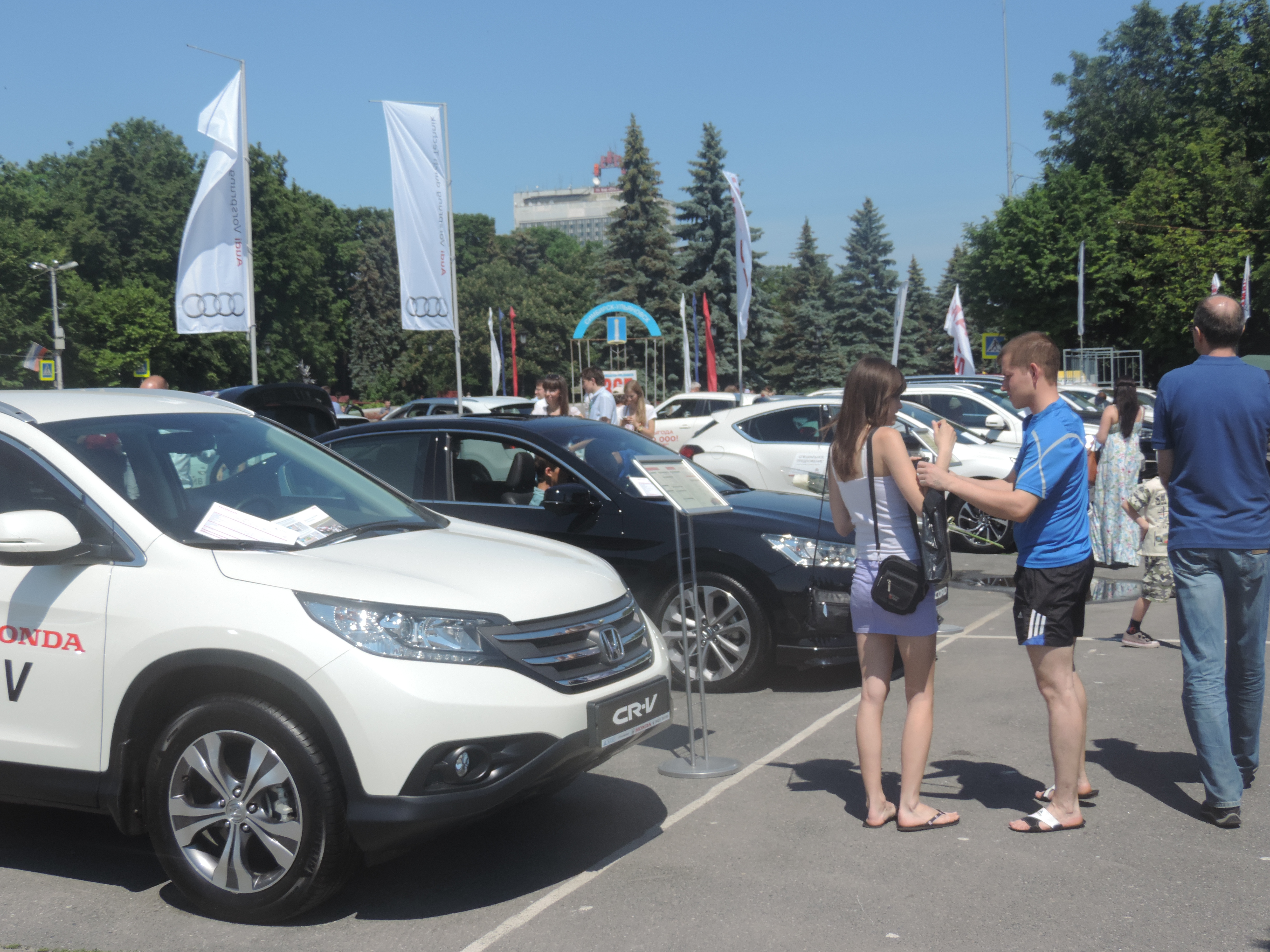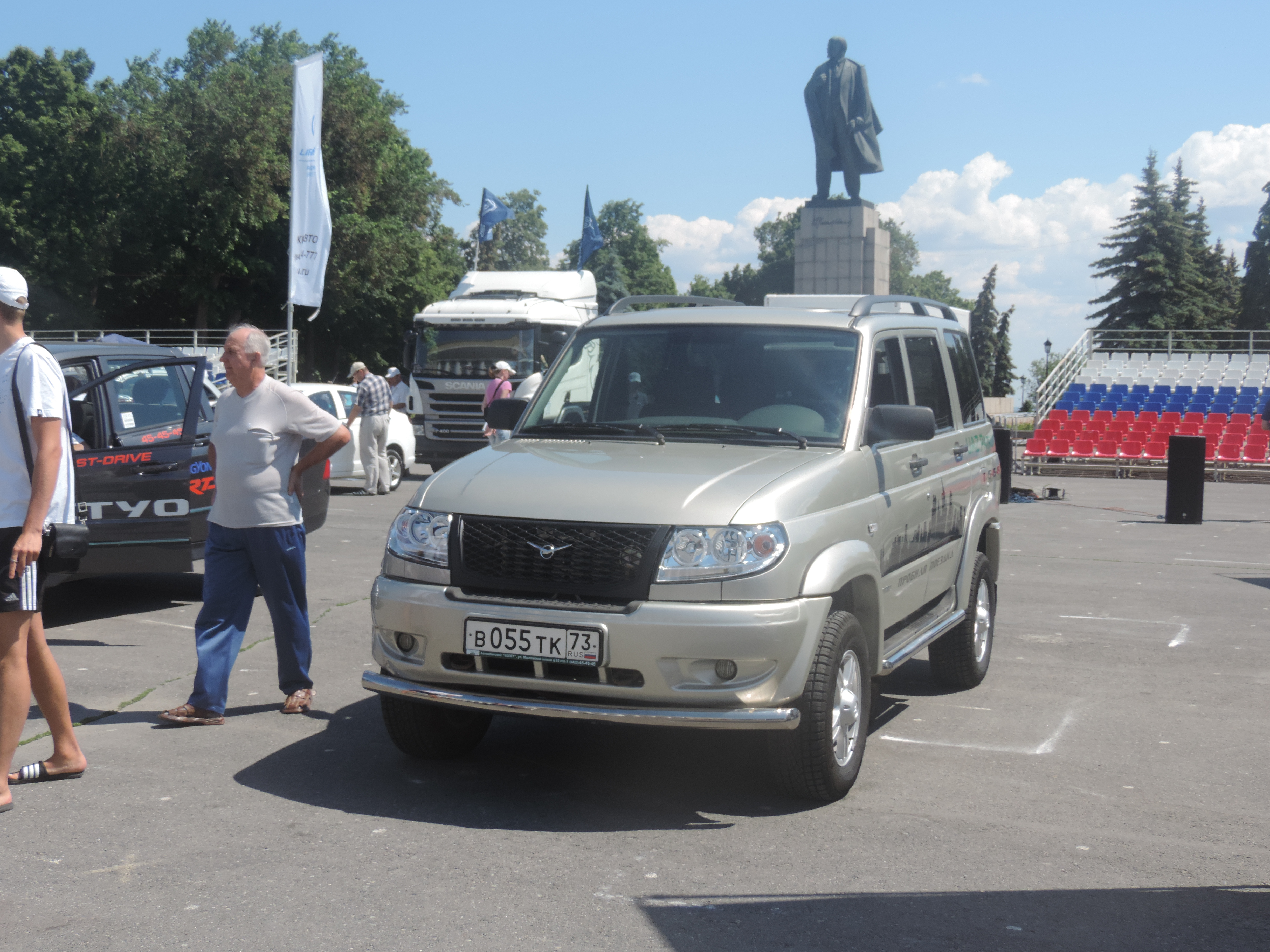 В это же время на площади была организована автомобильная выставка, на выставке были представлены большинство известных марок автомобилей и другой техники, начиная от тягачей, заканчивая тракторами...