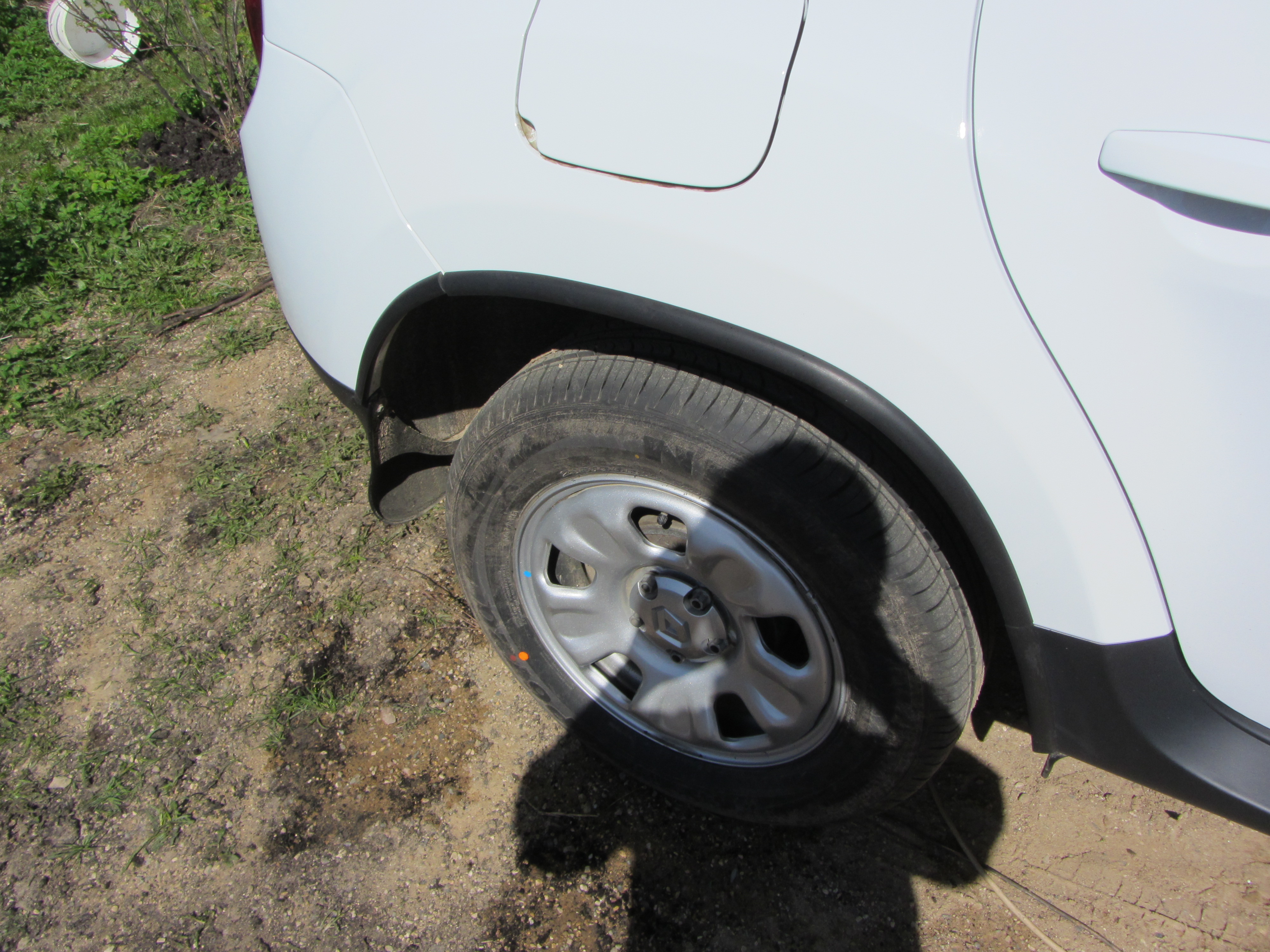 Бортик внутрь арки я подрезал почти полностью. Оставил где-то 3-4 мм исключительно в качестве направляющей чтобы ровно приклеить к арке. Уплотнитель я разрезал в местах стыковки пластика (бампер, порог) к железу, чтобы можно было без проблем снять что либо. Только вот стык заднего бампера не очень хорошо получится. Угол ушел почему-то. Но не критично. В общем, во вложении фотки - как все выглядит. ИМХО, будто там и было. Тем, кому нравятся накладки на арки у Террано этот вариант подойдет. Бонусом - 1 см расширения. В купе с гардовскими брызговиками я теперь имею чистые стекла! Довелось потестить в дождь. Если раньше передние стекла закидывало даже с брызговиками, то теперь нет. Кстати, бамперы в районе расширителей пыльнул антигравием, чтоб белая полоса не выделялась (последняя фотка) |