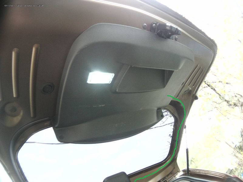 Где в задней двери наиболее оптимально и правильно расположить и протянуть провода от камеры, встроенной в плафон освещения номерного знака к лампе заднего хода ( питание ).