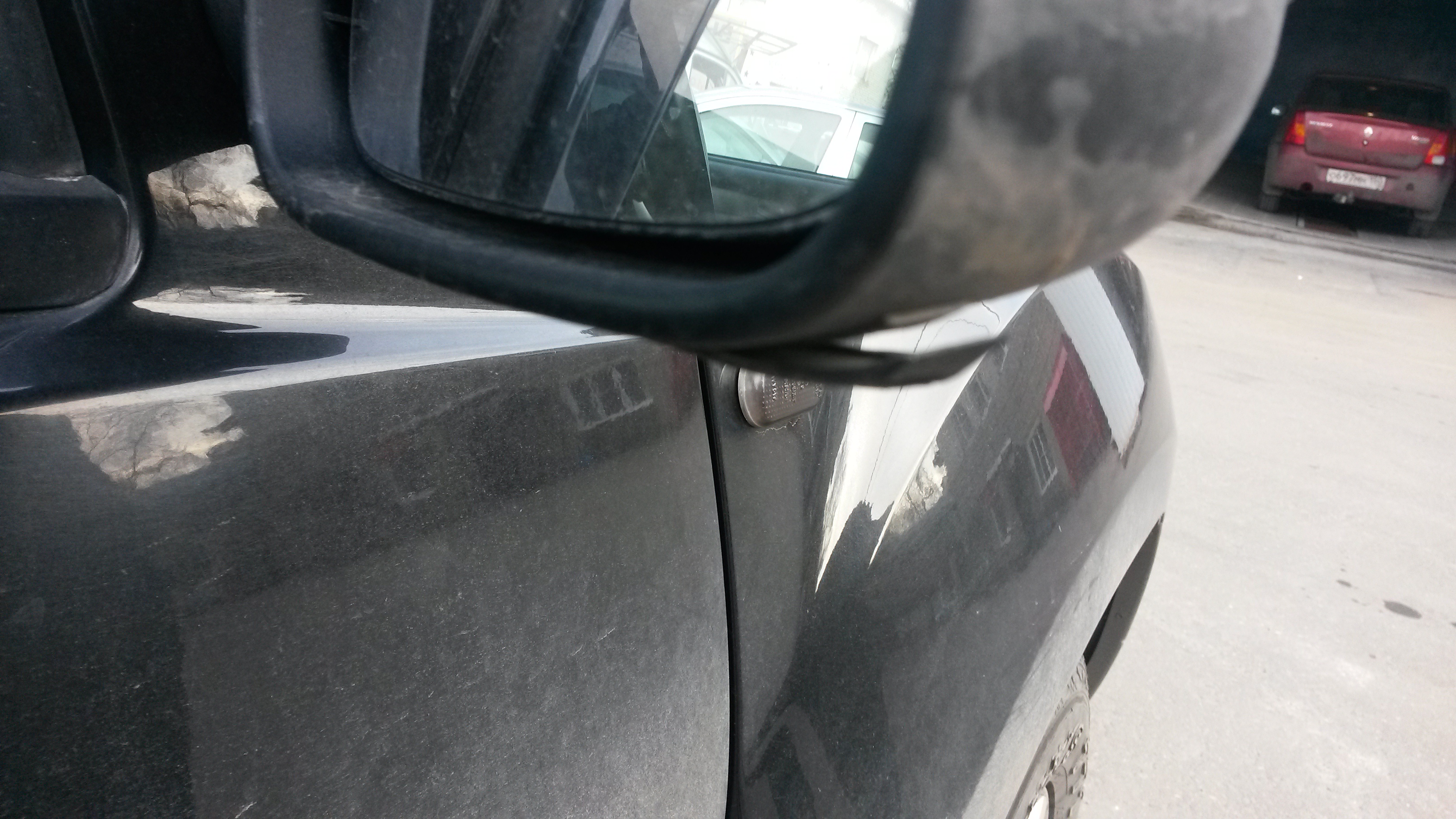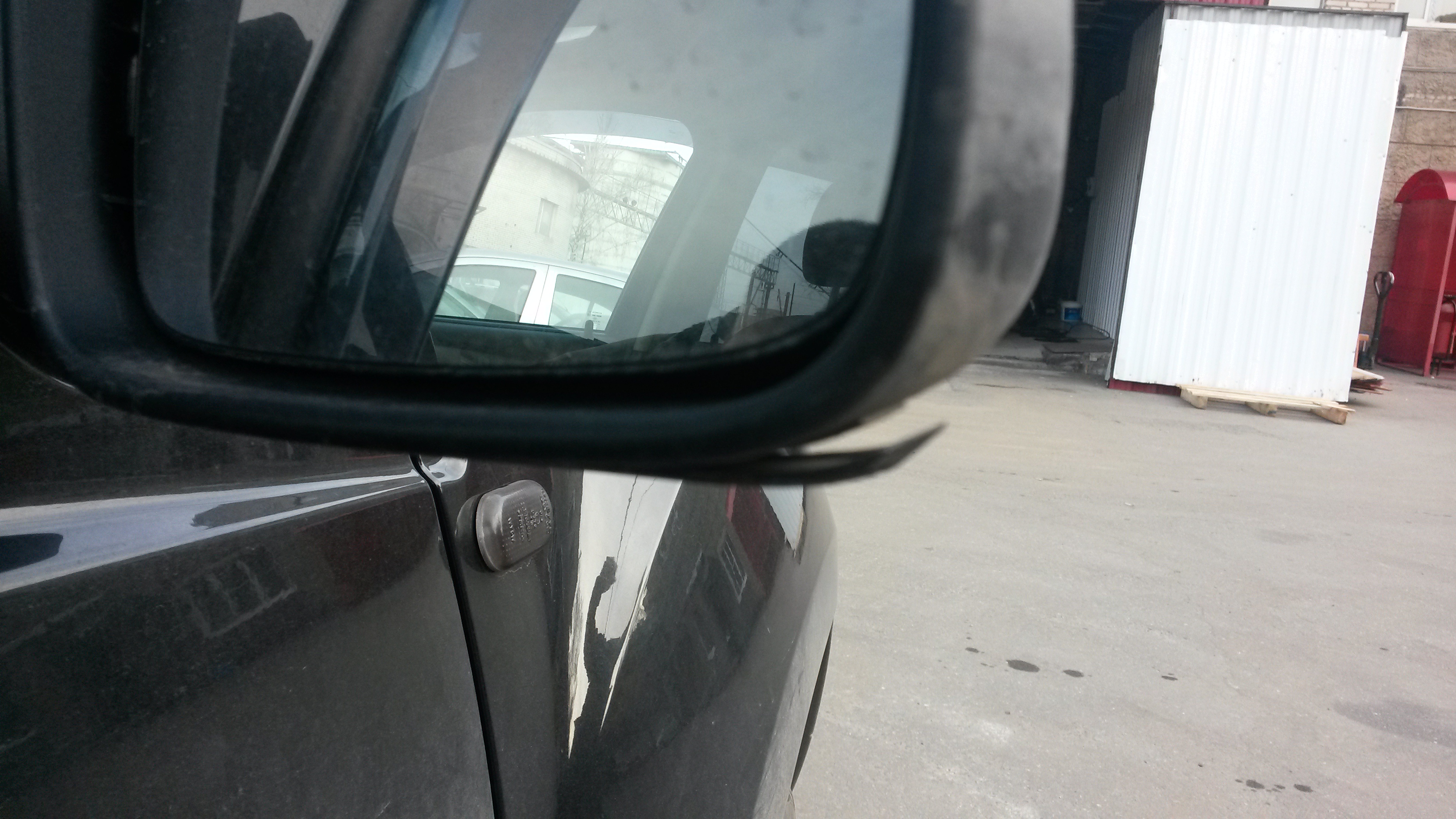 Спустя 1 месяц и 2,5 недели спойлер справа отклеился. Пришлось переклеивать. В чем причина не знаю, может накасяпурил с местом наклейки , но пластик отклеился от скотча, скотч остался на корпусе зеркала.