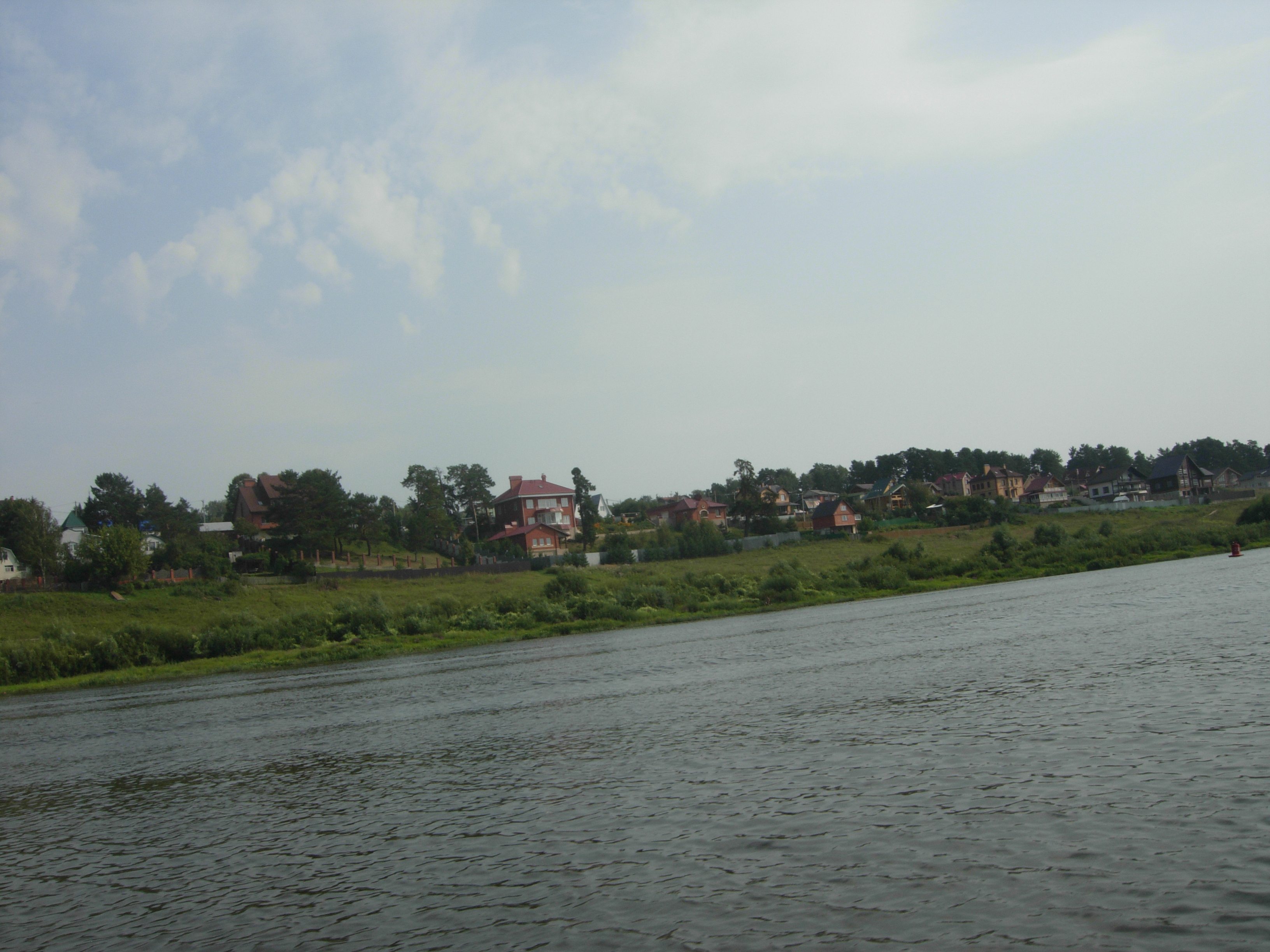 Дима (Окунь) пригласил на водную прогулку по крупнейшей водной артерии Тульской области. Предоставил свой катер, снабдил всех нас индивидуальными средствами спасения на воде и прокатил по изумительнейшим местам. Это было обалденно! Отличная солнечная погода, природа потрясающая, по берегам высоченные сосны, чистый речной воздух одурманивал. Ну, и сама река Ока - это особый мир, отвлекающий от ежедневной суеты и позволяющий полностью слиться с природой. На Оке, по обеим её берегам (один- тульский, другой калужский) отдыхало очень много народу, и на песчаных пляжах, и на разнообразной водной технике. Два раза прошли под мостом - к счастью. Дим, ещё раз от всех нас- Огромной Спасибо! Пристань.