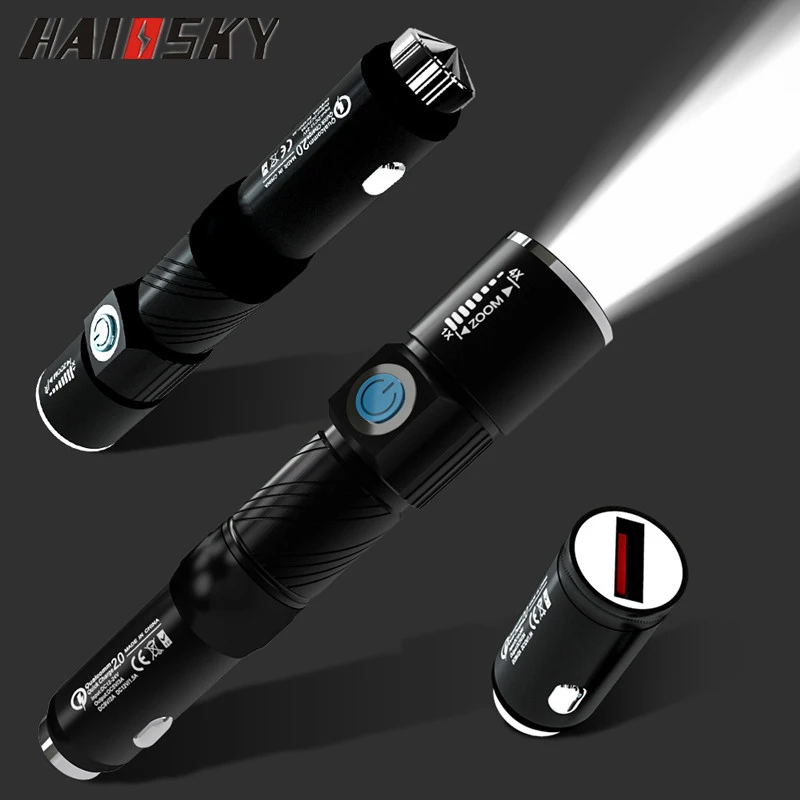 Быстрая зарядка 2,0 USB Автомобильное зарядное устройство + фонарик светодиодный фонарик + молоток безопасности