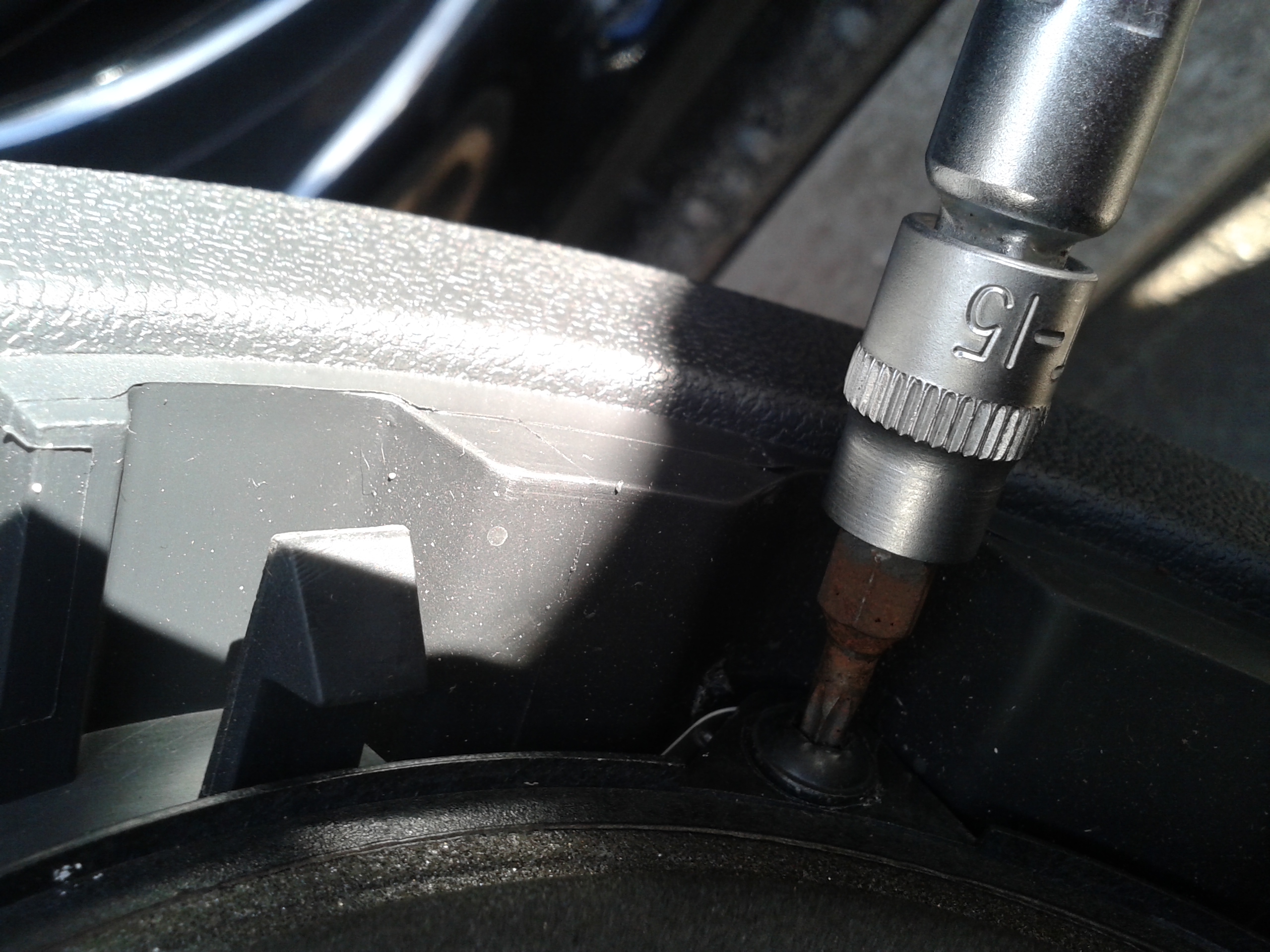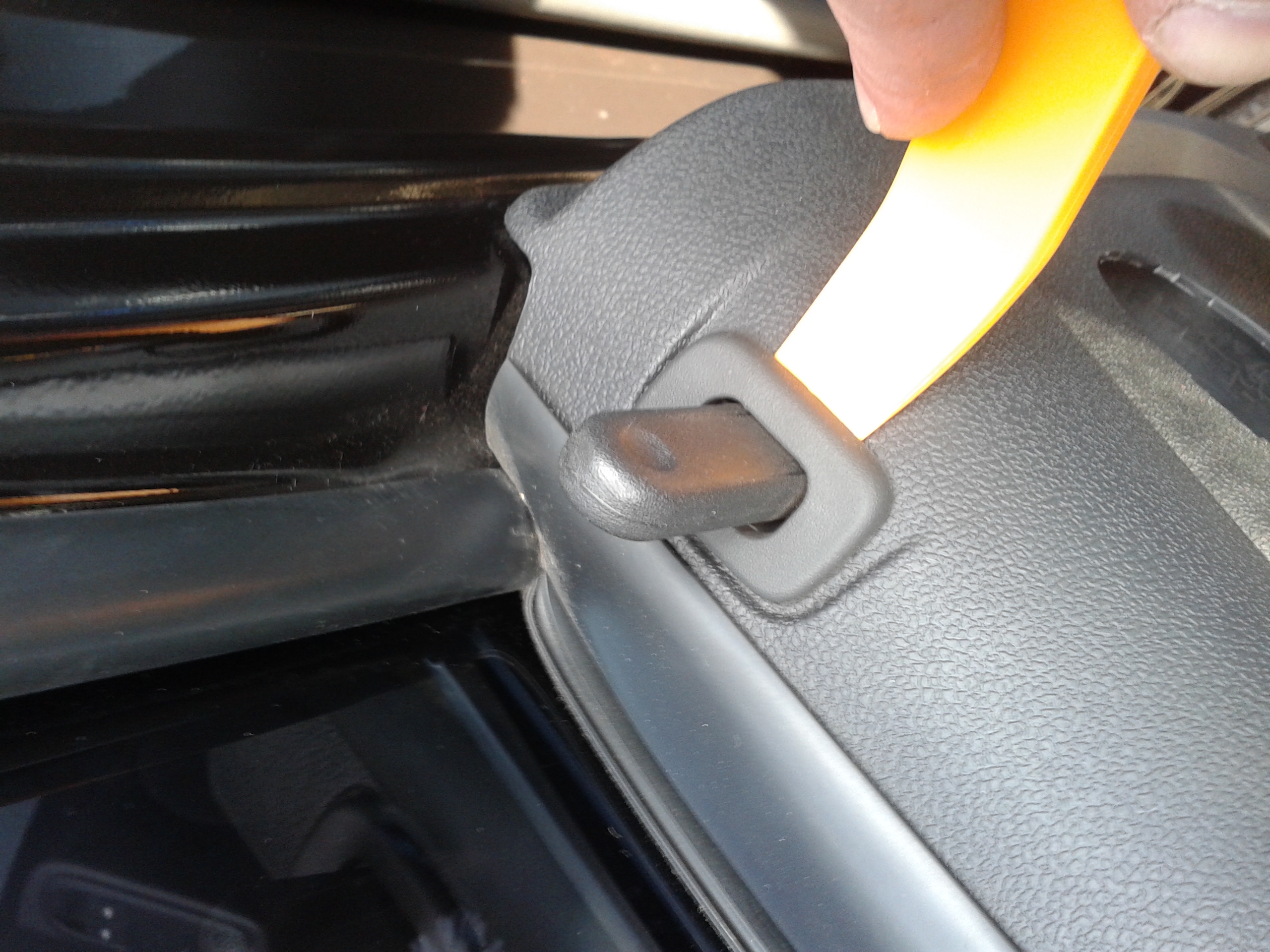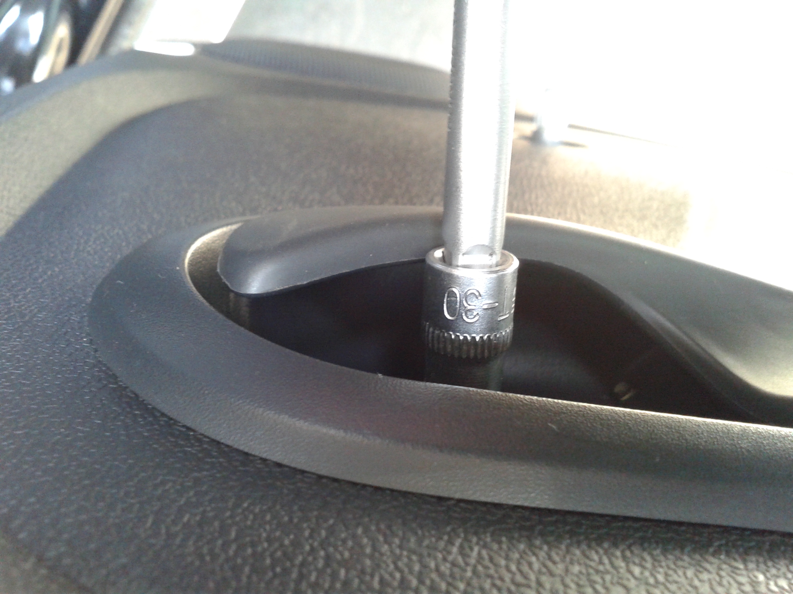 4) Отжал шайбу стеклоподъемника, выдернул скобку и снял ручку. 5)6) Подцепив китайской фомкой накладку ручки двери снял ее (осторожно внизу усы при снятии можно сломать т.к. накладка снимается в натяг). 7) Выкрутил болт торкс 30. 8) Открыл лючок и выкрутил саморез торкс 15.