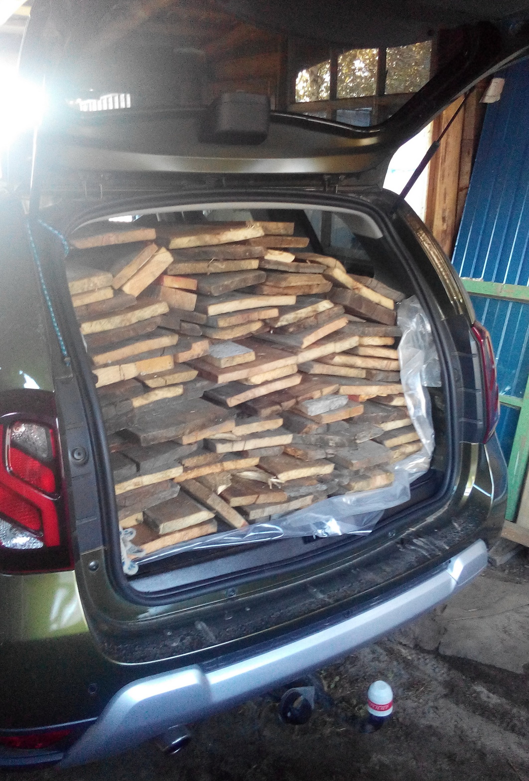Перевез очень много разнокалиберных досок до 190 см в длину. Задок у дастера просел заметно, но разрешенную грузоподъемность я думаю не превысил. Всего было 4 ходки. Тормозные качества снижаются, поэтому ехал аккуратно.