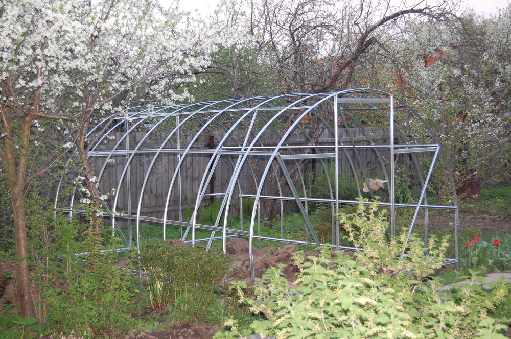 У меня такая несколько лет стоит. Но я после снегопадов снег сбиваю. У родителей такая же, без возможности доступа зимой. Поэтому мы с батей на зиму, поздней осенью, ставим вертикальные стойки, что-бы теплица смогла выдержать снеговую нагрузку. Уже года четыре держится, все