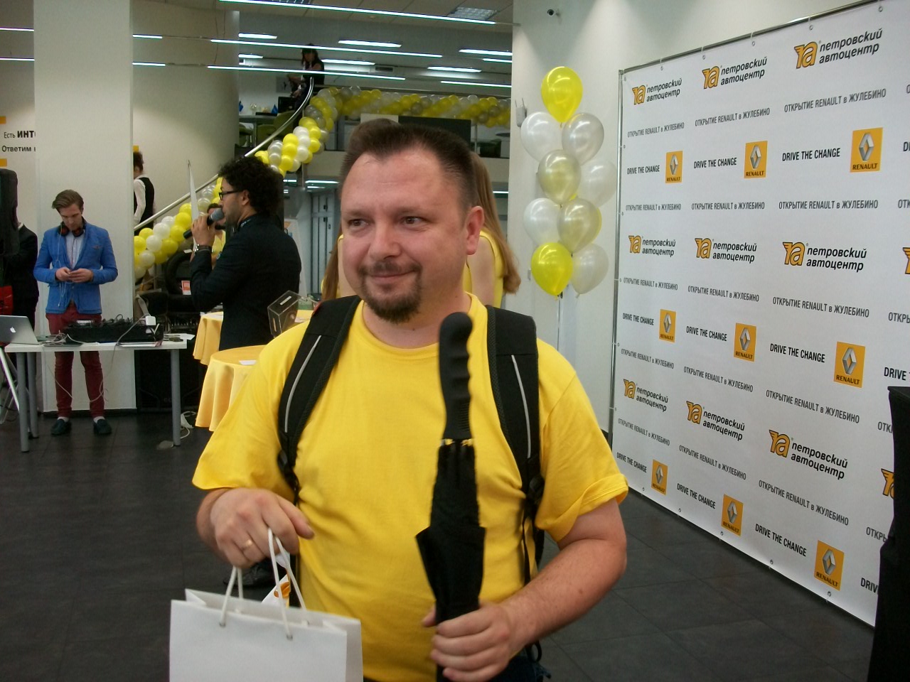 Поучаствовали в торжественной церемонии разрезания желтой (не красной, но фирменные цвета, все-таки) ленты открытия салона