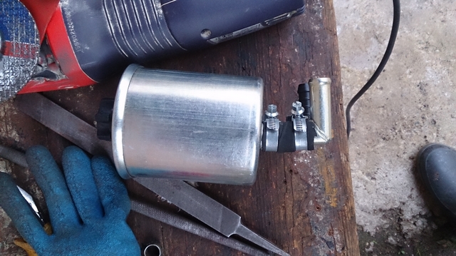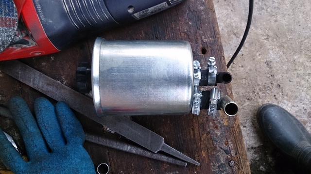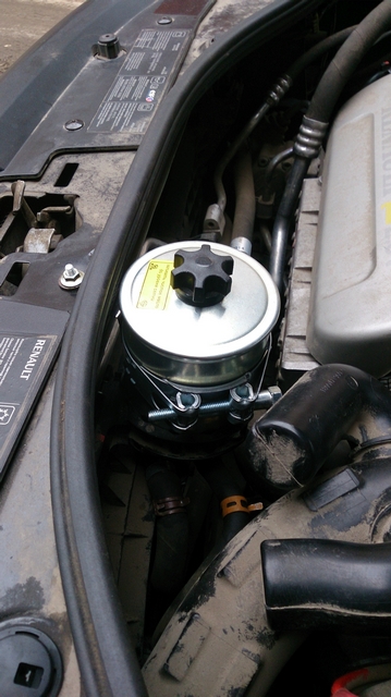 При очередном ТО на 45 тыс. км. заглянул в бачок ГУР. Жидкость из насыщенного красного цвета стала почти коричневой и, самое неприятное, пахла горелым. Значит, пора менять, несмотря на то, что согласно руководству «жидкость залита на весь срок службы». Изучая интернет, наткнулся на темы, где много народа заменяло родные бачки ГУР на бачок от волги ГАЗ 31105 (он же стоит в Баргузине, УАЗе и др…). Смысл этой замены был в том, что в родных бачках не было полноценного фильтра жидкости ГУРа (только сеточка), а в волговском он был, и из-за этого жидкость ГУР всегда была чистая, что благотворно сказывалось на ресурсе рейки и насоса. Также выяснил, что бачков от волги существует два типа: 1. пластиковый неразборный, 2. металлический разборный со сменным фильтром. В пластиковом бачке также был фильтр, но он меняется вместе с бачком, т.к. бачок неразборный. Итак, было принято решение заменить родной бачок ГУР без фильтра на металлический бачок со сменным фильтром от волги. Сразу хочу предупредить любителей эстетки под капотом – это не ваша тема, получился «колхоз». Было закуплено: 1. Металлический бачок от волги со сменным фильтром – 1100 руб. 2. 2 литра жидкости «RENAULTMATIC D2» – 1200 руб. 3. три хомута 16-22 для шлангов, 3 хомута 12-20 для шлангов, один хомут 91-97 для крепления нового бачка. 4. Угловые соединители диаметром 16 и 12 мм. 5. По 1 метру (меньше просто не продавали) армированные шланги ДУ 14 и 10 мм. Сначала купил металлический бачок вместе с фильтром и померил диаметры штуцеров, они в точности совпали по диаметрам (16мм сбоку бачка и 12 мм по центру) с родным бачком. Главная засада была в том, что у родного бачка штуцера выходят в бок, а у волговского вниз. Резать родные шланги не хотелось, мало ли что, так что пришлось городить угловые соединители. На 16 мм подошел металлический соединитель от печки МАЗа, а на 12 мм взял какой-то пластиковый. Потом вместе с бачком пошел в магазин примерять шланги. Как ни странно, шланги ДУ 16 и 12 как-то не очень плотно сидели на штуцерах, а ДУ 14 и 10 подошли как нельзя лучше. Дальше скрестил соединители с бачком и примерил конструкцию по месту. Высота конструкции оказалась слишком большой, было принято решение укоротить штуцера на бачке и соединители. Результат можете видеть на фото – натуральный «колхоз» (знать бы заранее, постарался бы вварить угловые соединители в бачок). Волговский бачок сел в родное крепление только самой нижней своей частью. Вес волговского металлического бачка намного превышает вес родного пластикового, да еще жидкость ГУР в бачке добавит вес, стало понятно, что шанс обломить родное пластиковое крепление очень велик. Поэтому стал городить дополнительное крепление из хомута Norma диаметр 91-97мм. Результат на фото. Ничего лучше не придумал, как закрепить хомут. Просверлил отверстие в Дастере, собрал конструкцию, по месту отметил отверстие на новом крепеже, снял хомут, просверлил в пластине отмеченное отверстие. Конструкция готова. Бонусом получили третье жесткое крепление радиатора к корпусу, радиатор стал трепыхаться гораздо меньше. Бачок стоит гораздо выше родного, но капот не задевает. Теперь промываем систему и заливаем новую жидкость, как это сделать описывать не буду, в интернете полно тем, главное не завоздушить насос, мне это удалось, после запуска двигателя никакого воя и пузырей воздуха не было. Катаюсь третий день 