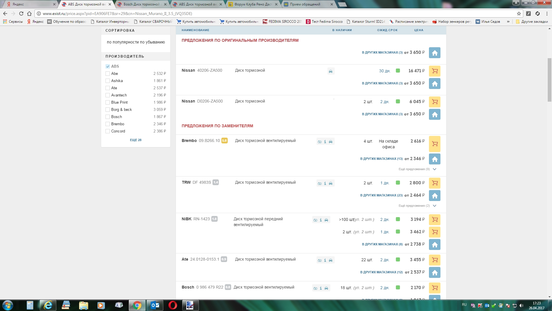 Заменить на хороший бренд не проблема. Найти бюджетный вариант из комплектующих это вариант. Супорта последних версий Инфинити Fx, хороший и дорогой вариант надо мерить. Супорта Ниссана не лучший вариант, забивается грязь в пазах скобы и колодки подвисают. Приходится чистить пазы скобы ещё в половину до замены, сами супорта эффективны,но не самые лучшие, чаще требуется чистка и резиновые чехлы летят как на зубилах. Если крепёж к скобе подойдёт то как вариант и размеры. http://www.jbt-brakes.ru/node/1888 на авито поискать, вот один из вариантов если за 4шт то можно вскинутся, найти только передние. https://m.avito.ru/moskva/zapchasti_...g_m_1152844624 Последний раз редактировалось Regas; 05.05.2017 в 13:38. |