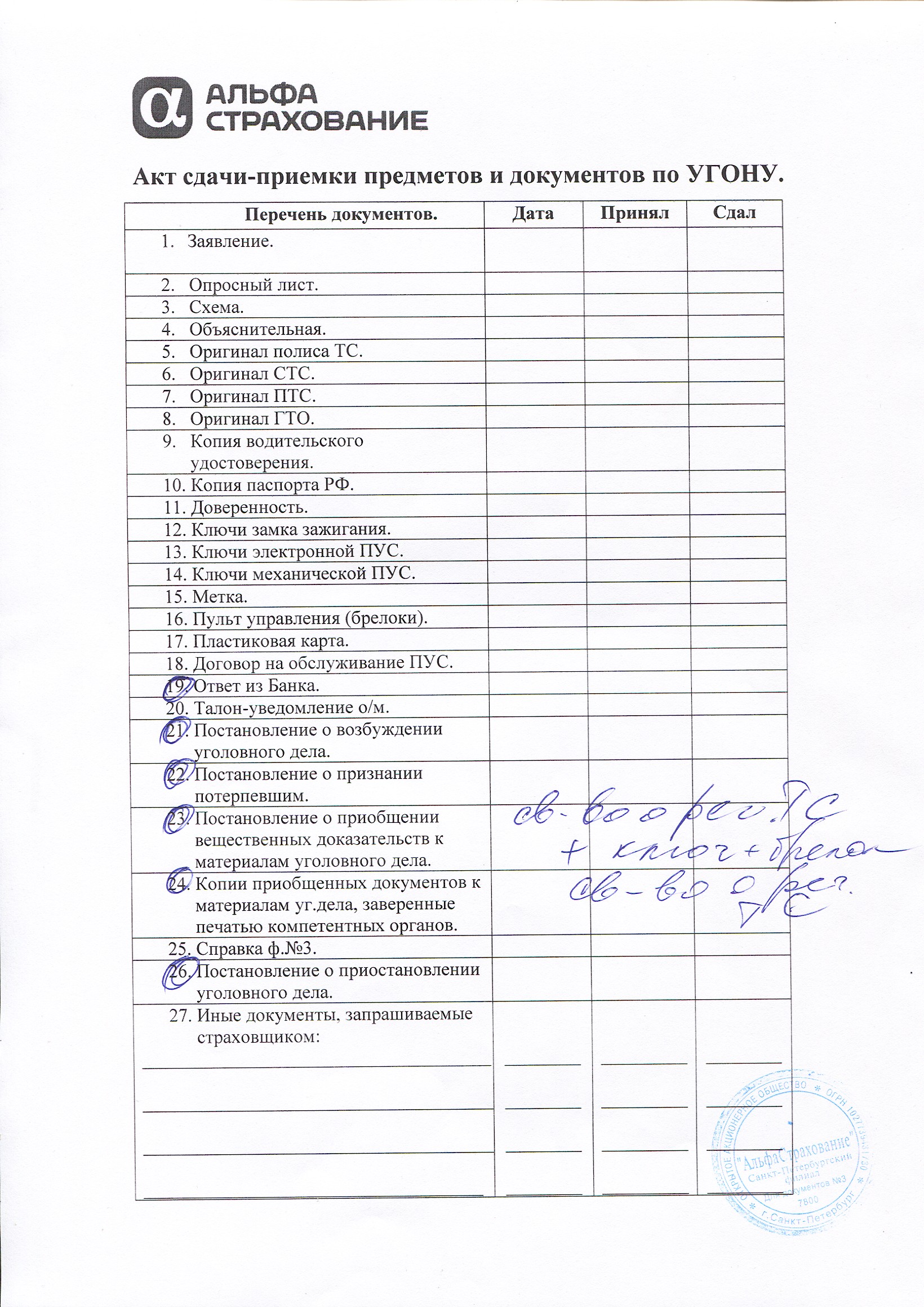 Вот то чего требует страховая