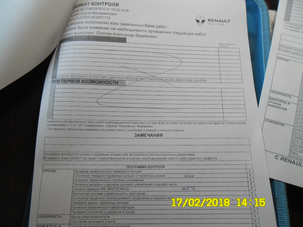 Всем привет! Прошёл вчера ТО-2. Цена меня очень порадовала. Накануне купил сам все расходники. На приёмке сказал что фильтра салонник и воздушник поставил сам. Нужно поменять масло и фильтр ну и всё что там полагается по регламенту. Посчитали оказалось всего 1844р за ихнюю работу. Предложили подождать минут 40 и бесплатный кофе. Минут 40 вызвали сказали всё готово оплачивай и забирай ключики от машины. Да порадовало ещё то что у моей машины колодки со временем наростают а не снашиваются как у всех