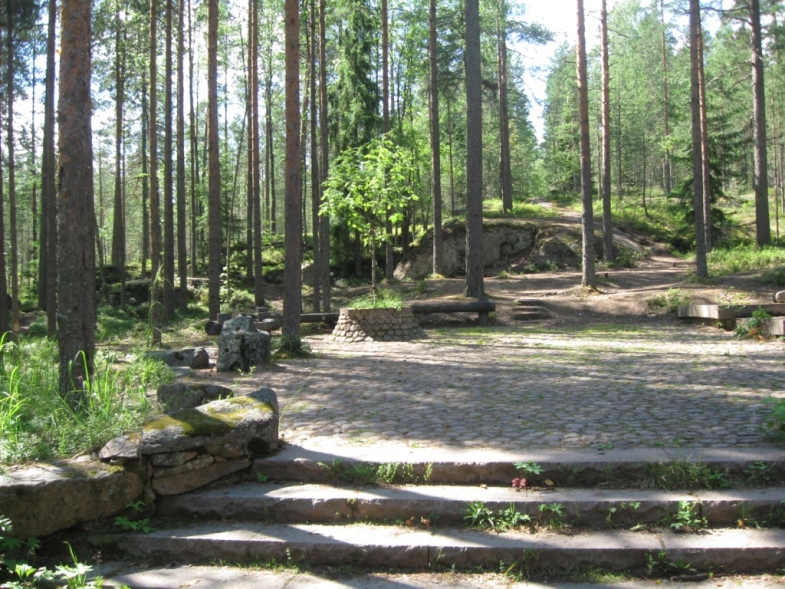Дорога не длинная и знакомая с несколькими остановками на осмотр мест интересных, да и просто мне нравится там ехать. А вот и Карелия Первой остановкой была Хийтола. Интересный там пятачок. На резком повороте расположена не большая площадка и несколько памятников: финам, нашим, и ещё какая-то разрушенная кирха. И гора недалеко, но на неё мы не полезли. |