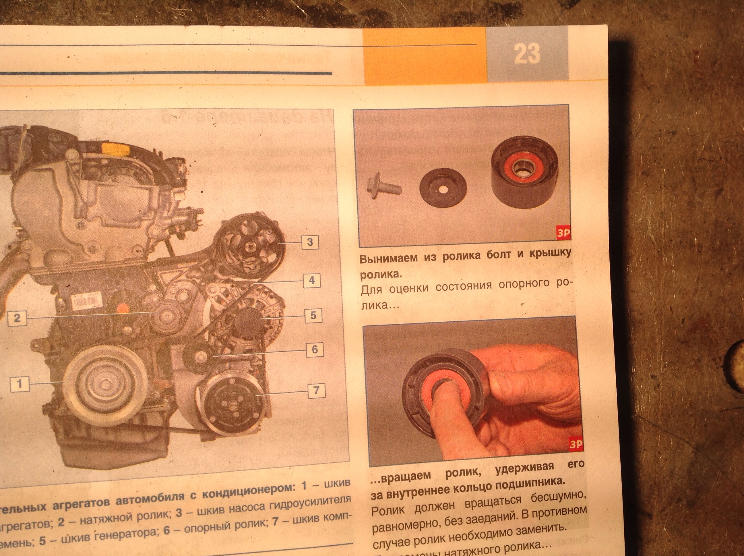 Случился у меня такой казус - при поездке на дачу проехал по высокой воде, хотя мог и не ехать. Вода поднялась под ступицу. Как результат - на 3-й день с утра резко завыло с первой стороны под капотом. С прогревом двигателя шум немного стих. Почитал на форумах, почесал все, до чего дотянулся, решил менять направляющий ролик ремня вспомогательных механизмов. В сервис не поехал, захотел сам посмотреть да и "жаба" задушила. Вечером в пятницу - все по "букварю", ремень освободил, колесо, защиту снял, а потом и ролик. Ролик разбирается легко - прорезиненные крышки поддеваешь кончиком ножа от внутреннего кольца, почти без усилий. Подшипник оказался забит "шнягой" солидол пополам с ржавчиной. Промыл, что вылилось демонстрирую на фото 1. Со сборкой пришлось поизголяться - одному сложно, но возможно. Натяжной ролик сумел зафиксировать - "ноу-хау", фото прикладывай. Завершить установку ремня лучше на приводном шкиве, с проворачиванием двигателя в по часовой стрелке. В результате шум удалил. Но думаю это не все, в других подшипниках, а также в ступицах проблемы вылезут по позже. Последний раз редактировалось Валерий Н.П.; 17.01.2015 в 18:36. |