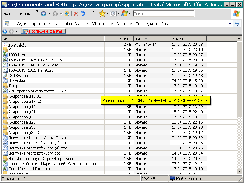 вот только по одному указано что это файл параметров - то есть нам аще ни к чему, а содержимого папки "Последние файлы" не видно.