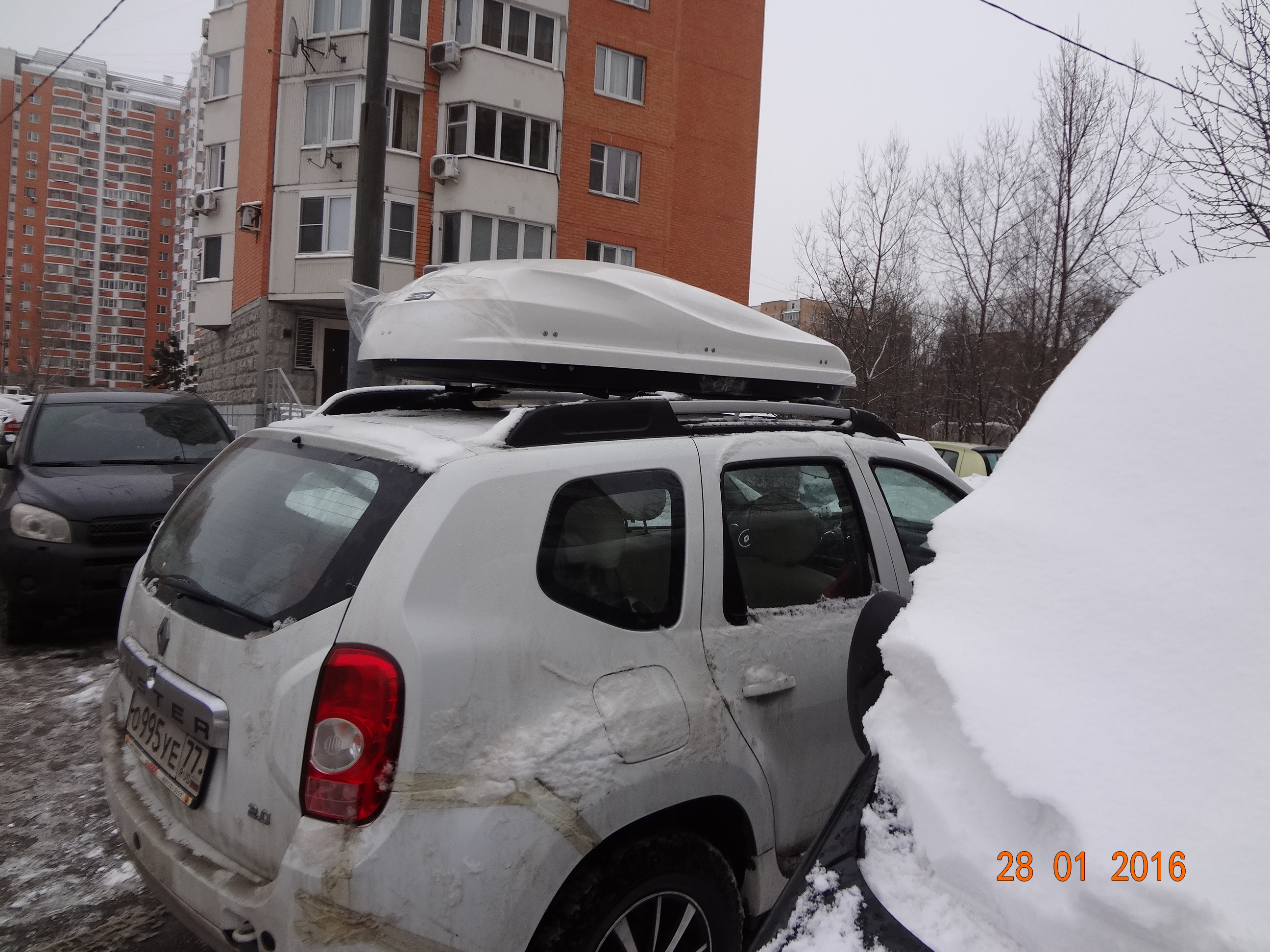 Вот выкладываю фотки(просто положил на крышу), хорошо не взял менабо, этот кургузенький Sotra под стать дастеру, да и чуть побольше.