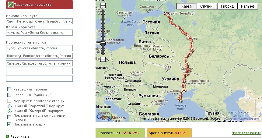 Aargh68, ездил тремя разными маршрутами.1.Питер-белоруссия-Киев -Николаев-Крым