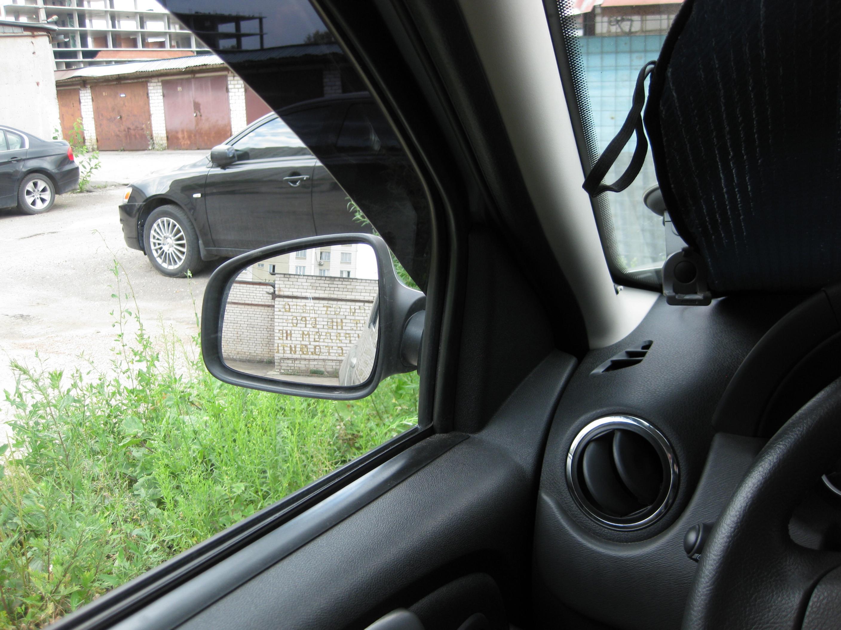 пару фоток из салона, что там происходит с видимостью боковых зеркал, при такой наклейке ветровиков. Снимал с того места, откуда наблюдаю за происходящим на дороге в процессе низколетящего троллинга по безкрайним просторам нашей необъятной Москвы.