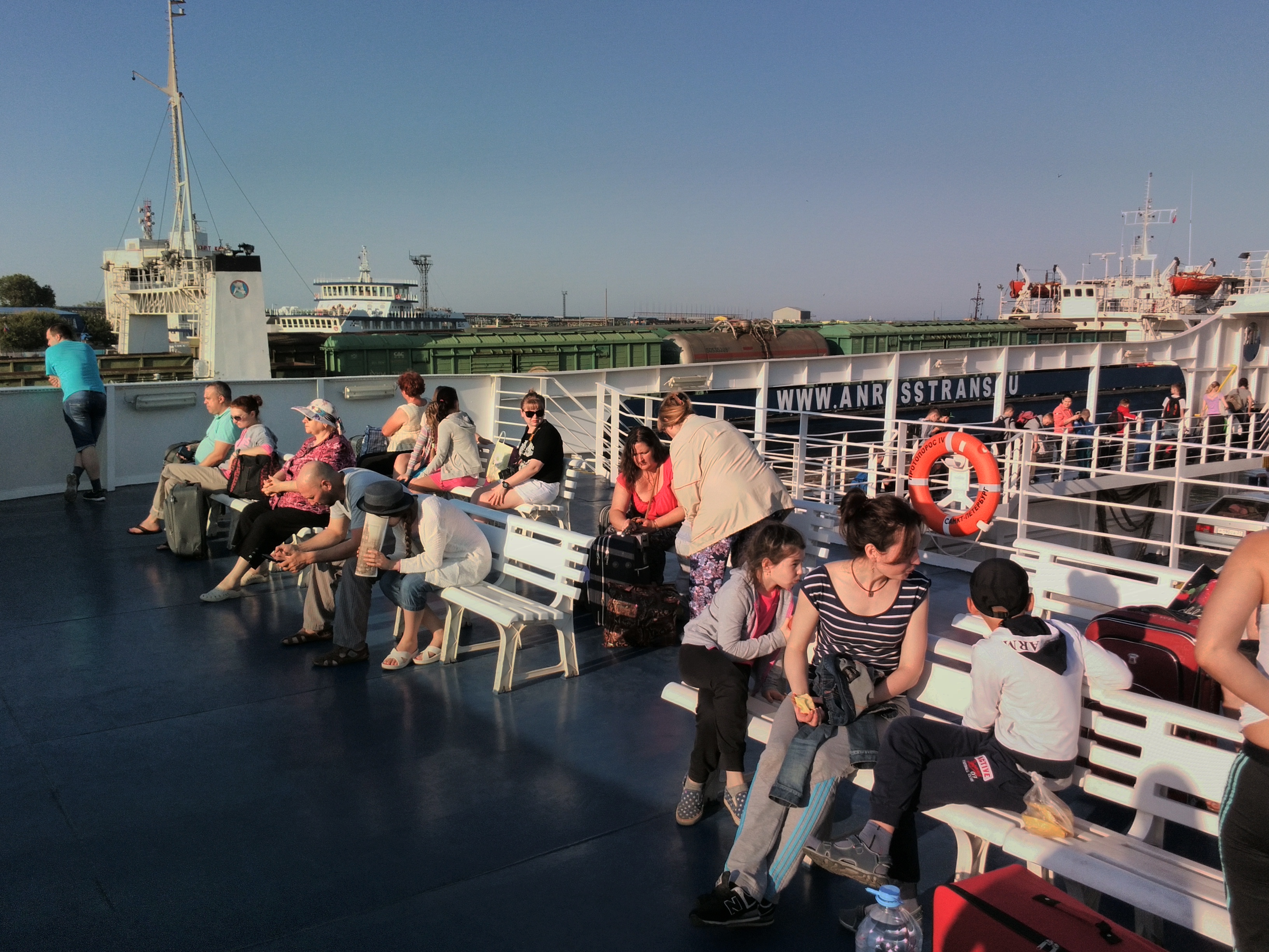 Переправлялся по электронному билету 10.06 во временной слот 7.00-13.00. Подъехал к накопителю в Ильиче за час о слота, перед въездом очередь на обмер из 6 машин, показал эл. билет и меня направили в объезд всего накопителя прямо на выездные ворота, там уже было 5 машин с электронными билетами. В общем накопителе было порядка 40-50 машин (не считал, приблизительно). Пока курил начали выпускать машины из общей очереди, прошло 10-12 и дали команду выезжать и нам, электронщикам. На посту ДПС притормозили, гаец махнул жезлом-проезжай- и мы рванули в накопитель в порту перед погрузкой. Личный досмотр прошел поверхностно-открыл багажник, оружие есть-нет, проезжайте.В самом накопителе машин не было и мы сразу влетели на паром, правда в числе последних, за нами закрыли аппарель и в путь.На все ушло 1 час 10 минут. через 30 минут плавания и швартовки сошли на крымский берег.Переправлялись на пароме "Протопрос 4", а перед нами 10 минутами раньше ушла "Победа".Мы его нагнали в Керчи. Огромные паромы, многоярусные, скоростные,красивые. |