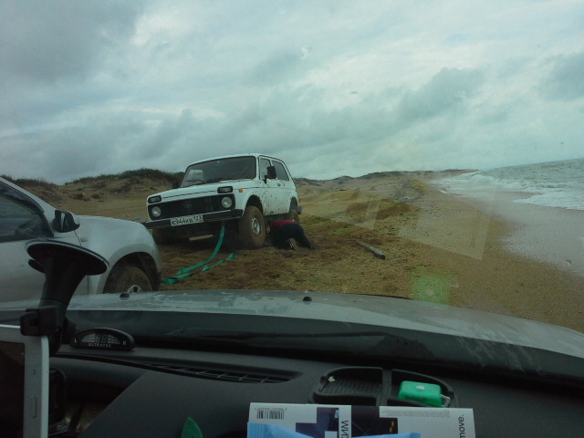 . Решили прокатиться по берегу (напротив Пятницы). Нашли сравнительно неплохое место с приличным пляжем. Вечер до темноты был достаточно томным, если не считать разлетавшуюся к вечеру малую авиацию. Но это хоть интересно было. Зато на самом пляже местный гоп-бомонд поставил мощные колонки и всю ночь дыц-дыц-дыц . Но и это понятно - просто не повезло: не в то место, и не в то время попали. Хуже другое. В прошлый раз мы этого не заметили из-за дождя, а в этот раз от воды периодически несло (пардон) тухлятиной. Второе, на что я ещё в первый раз обратил внимание - достаточно много дохлой рыбы на берегу. Оказывается здесь очень много заражённой глистами рыбы. Наверху с берега насчитывал более двух десятков рыбьих спин, торчащих над водой. Я в первый раз с таким бедствием столкнулся на Волге под Казанью, когда заражённый лещ кило на полтора точно также мучился. Меня местные рыбаки тогда просветили. Да уж. Мы уехали как только рассвело. Было 4.15 утра. Я не выдержал "пытки бессоницей" До дому домчались - просто сказка. Итог. Для нас это место увы - пропало как возможность полноценного отдыха. Будем искать другие варианты.