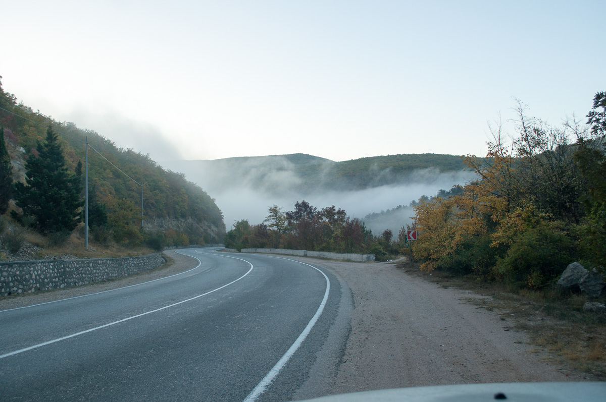 Выехав из Севастополя рано утром, я уже понял, что день удался. Стоило только посмотреть на восходящие солнце, как облака в ущельях гор зашевелились и были как будто живые. Облака не торопливо перекатывались через дорогу, заставляя въезжать в себя. (Да, некоторые фото могут повторится, но без этого я не смогу полноценно рассказать). По таким дорогам и на работу не печально ездить каждый день=) Путь до Алушты описывать не буду, доехал я за 2часа с хвостиком. Завтрак ребенка, сажаем экскурсовода и в путь. По пути конечно попадается Изобилинское вдхр. Я не смог не остановится... Лесники кстати дежурили до него, но у меня "билеты", бояться нечего. Да и вообще бояться нечего если не нарушать. Первая остановка во время экскурсии это -форелевое хозяйство. В нем разводят форель и выпускают в Крымские реки. Рыбу не продают. Само хозяйство испытывает проблемы с водой и в засушливые года остаются только 4 пруда из 17. Вода мутная после дождя. По весне река питающее хозяйство разливается и проехать нельзя. Но мы отправляемся к бывшему мужскому монастырю, слушая увлекательный рассказ. Но природа меня завораживает и я все ловлю в пол уха. По пути остановился сделать фотографию через грязное лобовое. Сообщив что ну не могу я не нажать на спуск. Экскурсовод улыбнулся и позволил мне ступить на асфальт ради кадра. За что я ему конечно не сказано благодарен. Мы посетили часовню, поставили свечи. Набрали водички с родника, утром мы были единственные. Я все переживал, не медленно я ли крадусь с моей любовью фотографировать пейзажи. Но вроде укладывался, как мне отвечал любезный экскурсовод. Утро было свежим, влажным холодным, сотрудники заповедника подмерзали. В монастыре нам понравилась стена, в ней что-то было интересное, средневековое... Но впереди нас ожидали новые пейзажи. Как мне рассказали здесь дорогу взрывали. Когда сдавали дорогу нашему Императору, который приехал на охоту. Его под предлогом трапезы отвлекли и так как этот участок дороги не успели проложить, мотор его просто перетащили. Когда император соизволил завершить прием пищи, то ничего и не заметил, т.к. повороты похожи. Я естественно не смог не остановится и не совершить фотографию своего мотора... Продолжение следует... |