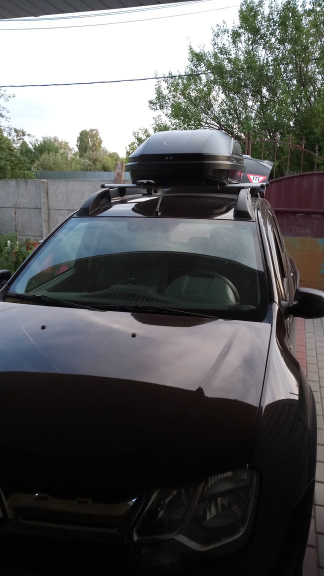 багажник inter аэродинамический и бокс. Сначала взял тритон-480, но пришлось съездить поменять, ибо слишком большой, да и замок показался хлипеньким. (Когда стоял в углу почти вертикально, неожиданно раскрылся ) В результате взял Евродеталь magnum 300.