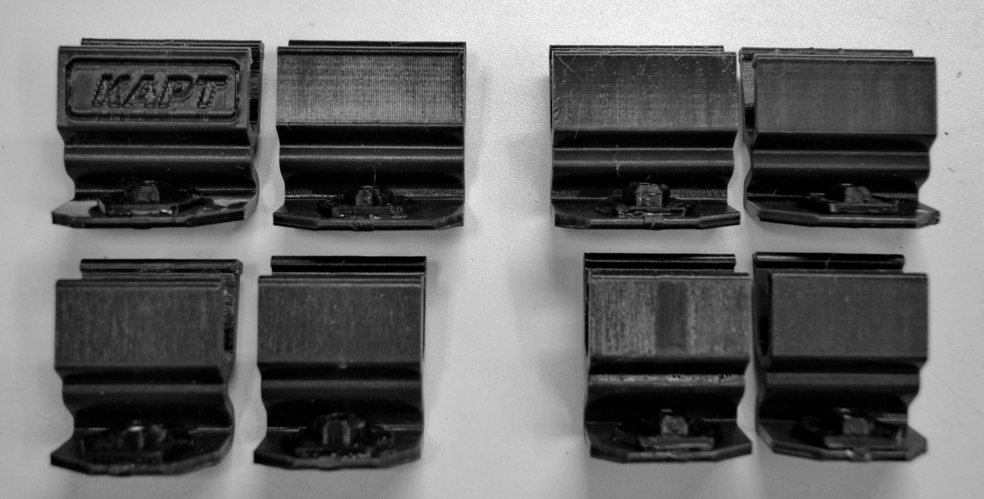 Заглушки №1 (верх), №2 (низ/глухая) и №2Т (низ с окном) - готовы, на этой неделе появятся в магазине, запускаем в производство. В связи с пропажей из продажи чёрного пластика для печати - первые защёлки для заглушек будут в коричневом цвете.