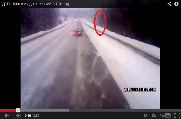 На втором видео видно, как загорелись стоп-сигналы, жигуль пошел в занос, водитель тут-же бросил тормоз (стопы погасли), но выровнять не смог. На такой занос ни кто не рассчитывал.Думаю, многим приходилось подтормаживать, выполняя правило 3-х Д. По моим картинкам выше видно, что поворот уже позади (я там об этом писал). Жигуль завершил обгон до этого знака. На картинке он уже на своей полосе начинает уходить в занос. Вот этот знак. Жигуль уже на своей полосе: