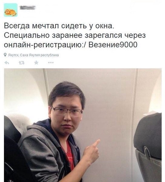 Я так в том году летел из турции в двоём без детей, попросил место у окошка, девушка любезно сказала у вас самые лучшие места с окошком. Нас посадили у аварийного выхода, окошко там было, но размером оно с яблоко, зато сидели вытянув ноги, жена была довольна и все нам завидовали