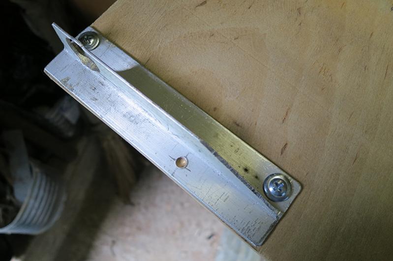 Из обрезков алюминиевого профиля были сделаны два кронштейна через которые проходит трубка, вставленная в пазы для шторки В середине фанерки шарнирно закреплена откидная нога В походном положении В положении "кушать подано" Приятного аппетита