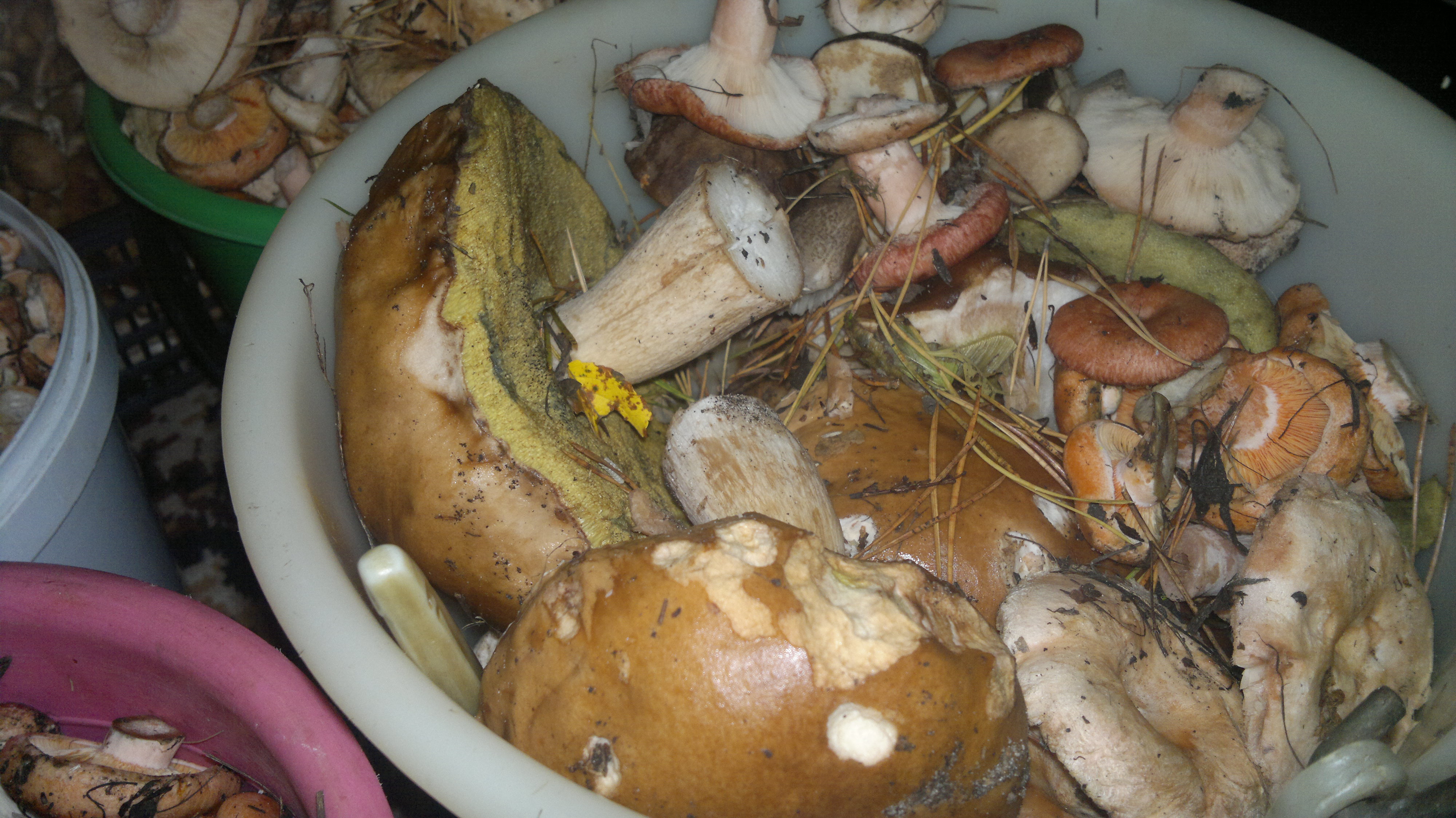 А пару дней назад человек, ожидавший своих женщин у машины 3 часа и увидев меня сказал,что во вторник они за пару часов с другом нарезали по 2 ведра каждый. Учитывая,что грибы крупные и хорошие, и среди недели - не трудно.