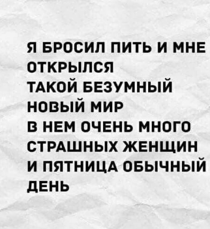 Работал на маршрутке №11, а у нас маршрут пол пути совпадает с №1, и вот садятся 2 пьяных мужика. Едем нормально, культурно, тихо, но после поворота на свой маршрут - расходимся с №1. И тут один из них начинает орать: "Шеф, мы куда едем? Куда везешь?" Ну я ему спокойно обьясняю, что №11 идет в микрорайон, а он что думал? Мужик секунд 10 соображает, а потом как даст второму подзатыльник, и орет на всю маршрутку: "Я же тебе говорил, одиннадцатый, а ты все -двоится, двоится..." ---- Сегодня заходил друг-фотограф, попросил показать свадебные фотки (свадьба была в июне). Включил комп, показал. Он взглянул на несколько фоток и дал заключение: "Фотографу по щам надавать нужно". Я возмутился:" У тебя у самого не лучше выходит". На что он, не отрывая взгляда от монитора, заявил:" Надавали уже". Последний раз редактировалось SidAn; 02.11.2017 в 07:57. |