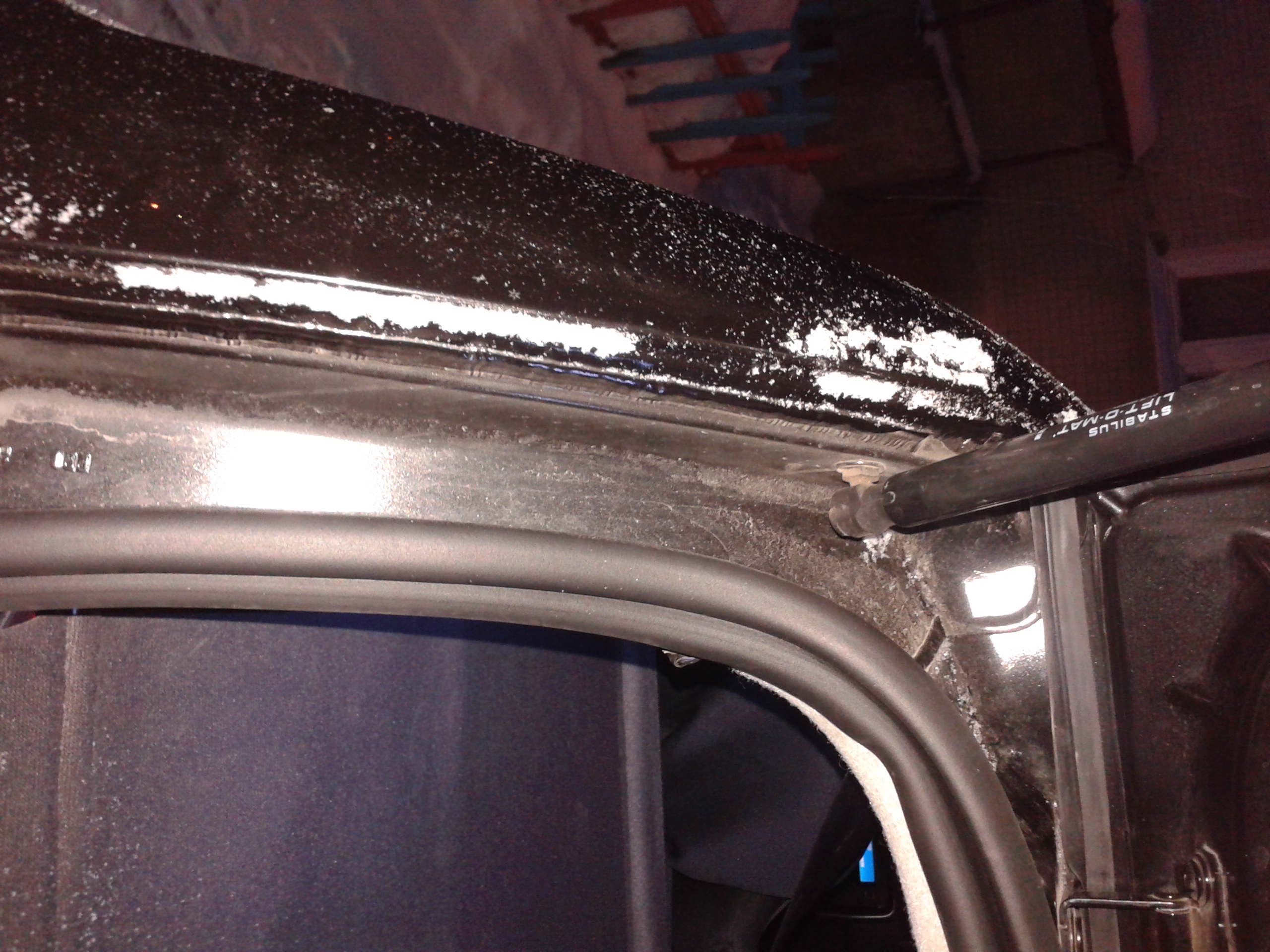 Сегодня доделал пятую дверь. Первый раз при установке обнаружил что дверь не закрывается. Пришлось уплотнитель вытащить в том месте где мешал (левый низ). Что самое интересное правый не мешал. Так вот, как только заехал в гараж первым делом оторвал накладку под замком и не полностью две больших боковых. Накладки от холодной машины отошли прикрасно даже не пришлось скотч переклеивать. Обрезал пластик ножницами по металу и с помощью прогрева строительным феном приклеил обратно. Багажник закрывается но все равно не так как было до.