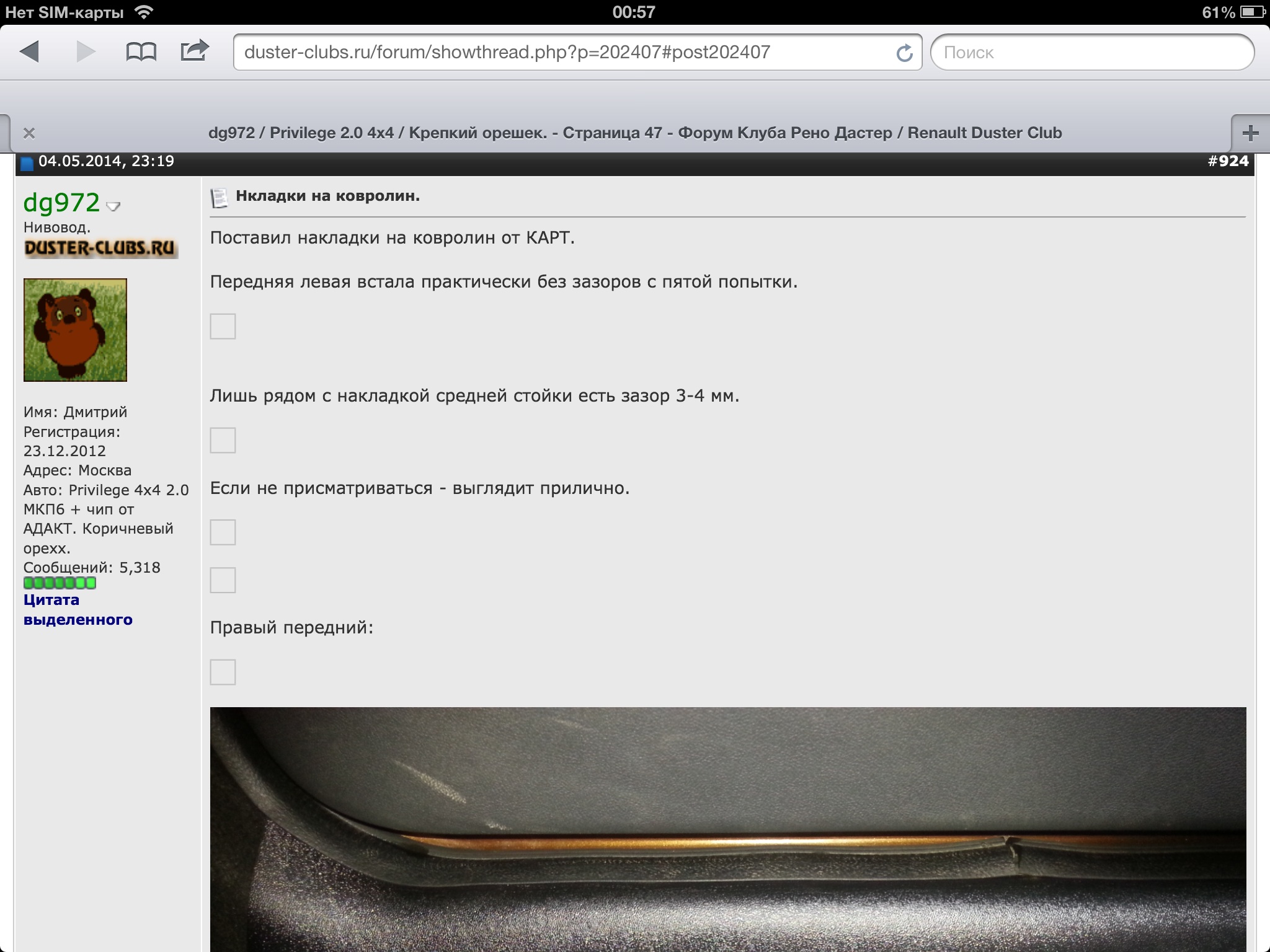 Поставил накладки на ковролин от КАРТ.
