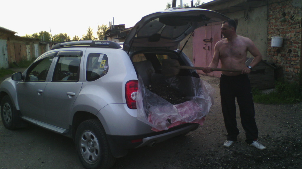 В выходные по пользовал Дастера в новом амплуа.Нужно было асвальта натаскать к гаражу, а то после дождя лужа собирается. ну лень матушка на выдумки хитра. Совсем не хотелось в вёдрах таскать за 100 метров )) решил так.