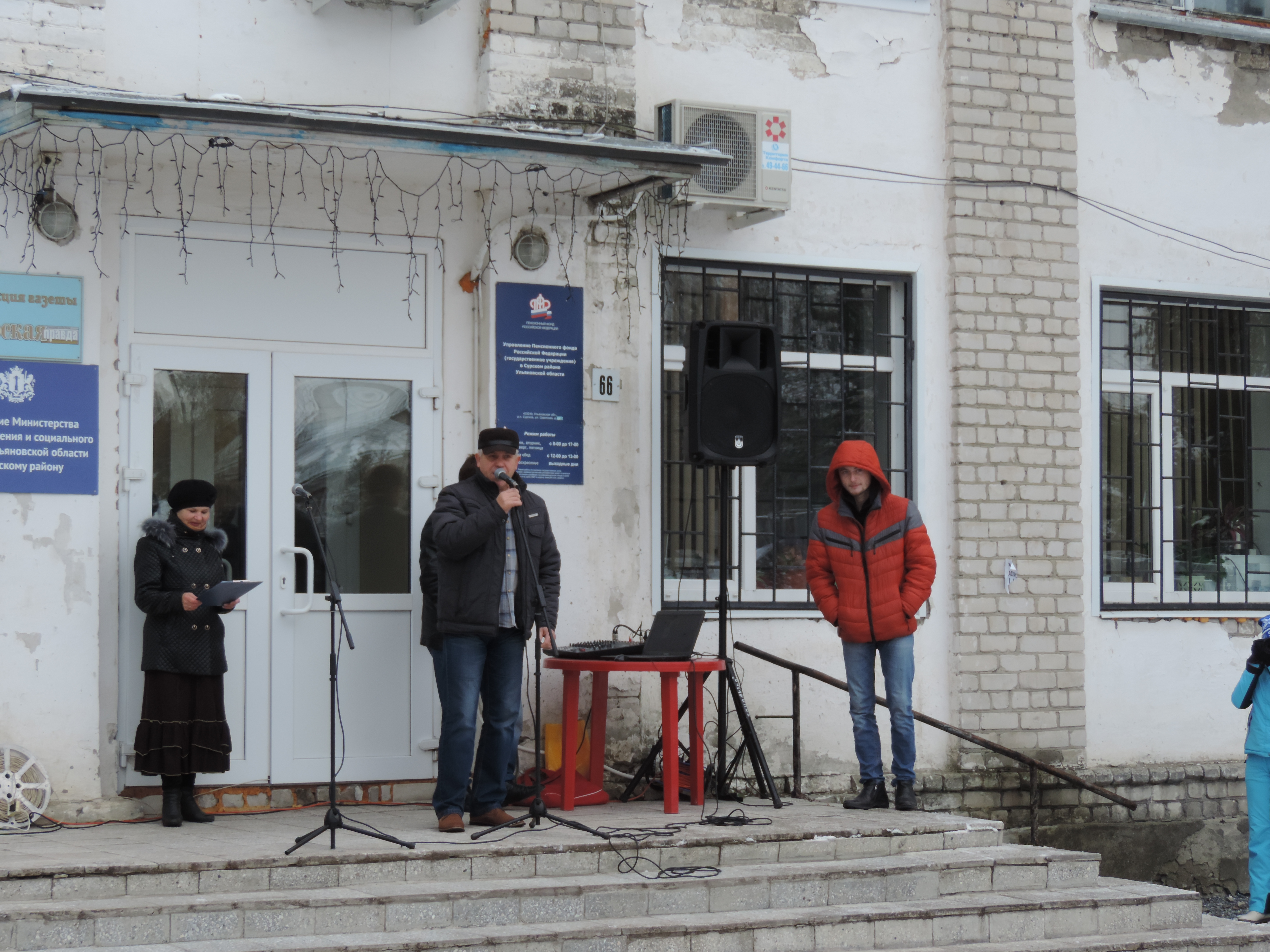 Итак, нас встречает глава администрации муниципального образования Сурского района Панчайкин А.А. и начальник отдела молодежной политики, физической культуры и спорта Грошев Ю...