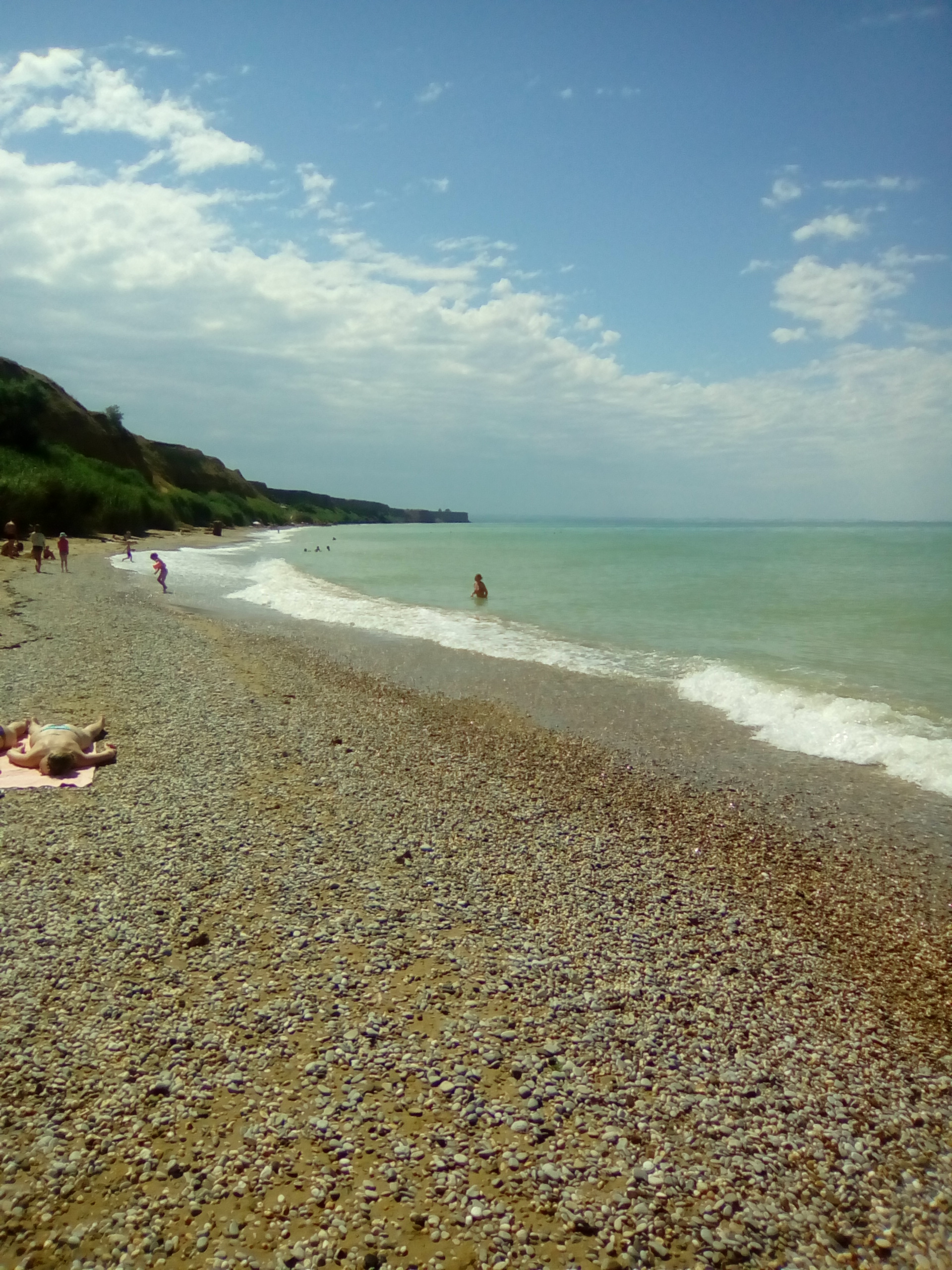 Судя по волне и направлению ветра в Казачке должно быть спокойно. Но там детям не радость, камни крупные, заходить не удобно.