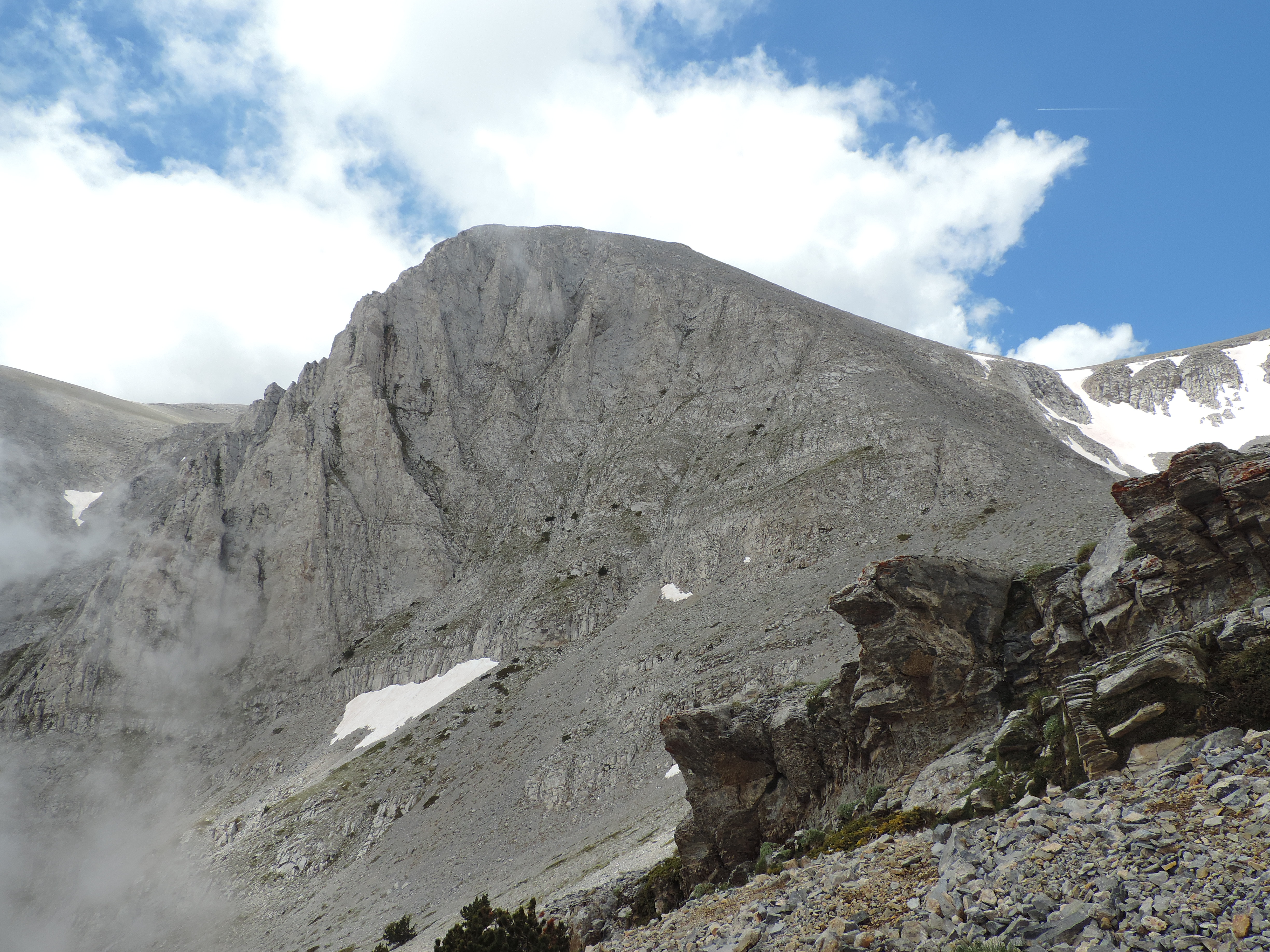 Изначально решил идти в сторону Митикас, так как по ходу подъема можно всегда переиграть и подняться на Сколио или Скала. На пик Стефани маршрут ухдит в сторону левее...