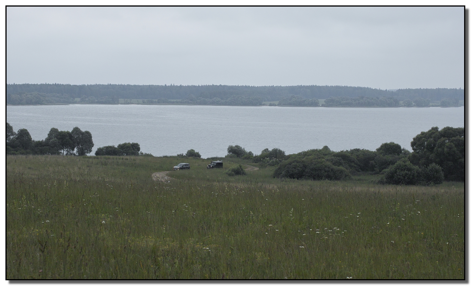 Потом мы поехали на второе место. Вид с горки. Это машины наших соседей домой снялись. Третий отстал.